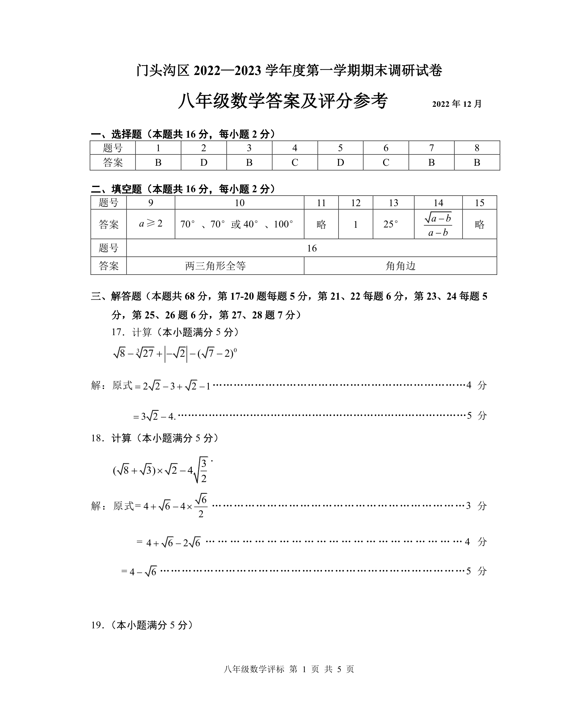 2022-2023学年北京门头沟区初二上期末数学考试已结束,admw360中考网第一时间 为大家整理了相关试题及答案,分享给大家。