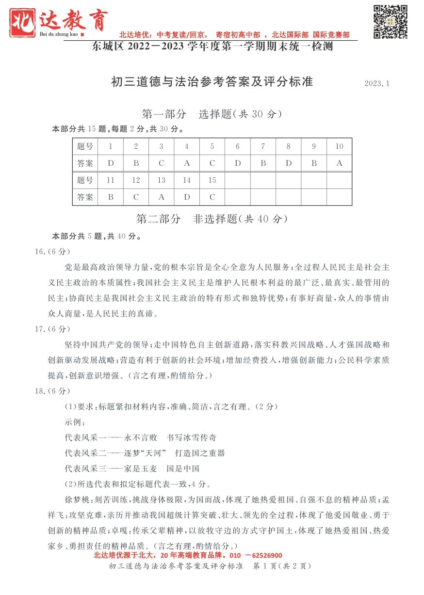 2022-2023学年北京东城区初三上期末道法考试已结束,admw360中考网第一时间 为大家整理了相关试题及答案,分享给大家。