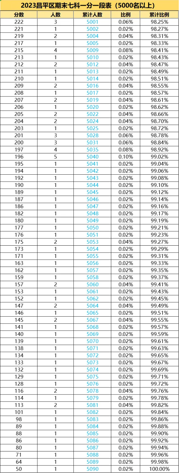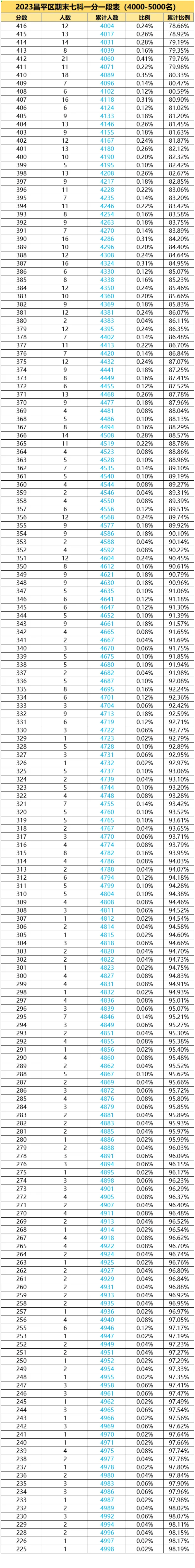 2023昌平初三期末(上)七科一分一段表(4000-5000名)网传版
