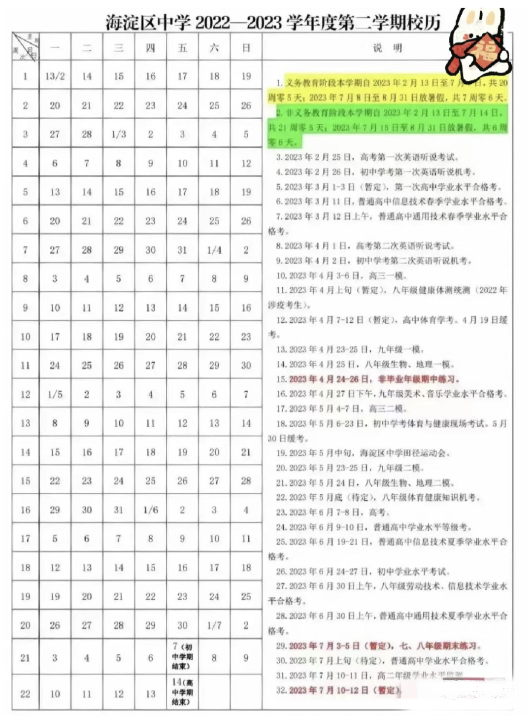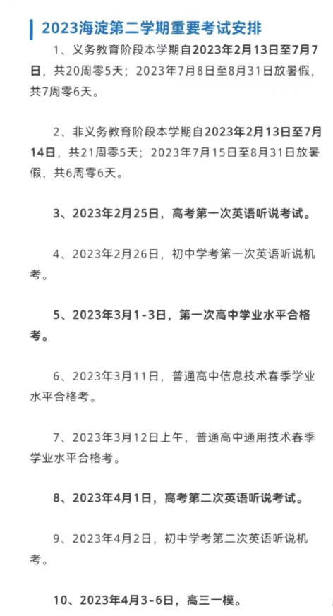 2023海淀第二学期校历:一模、二模时间已确定,以下是admw360中考网为大家整理的内容详情,一起来看: