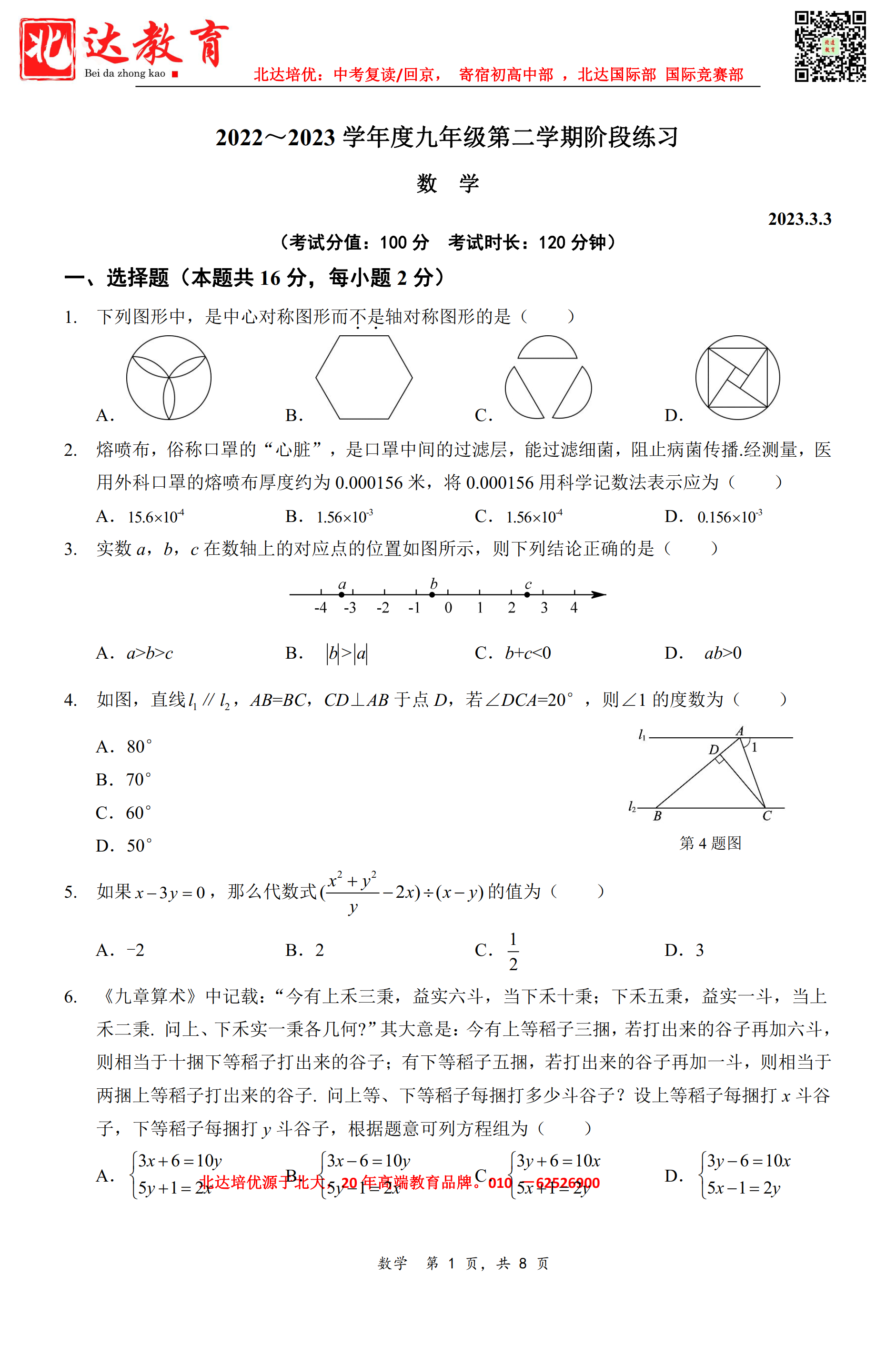 2022北京名校初三下试题及答案汇总