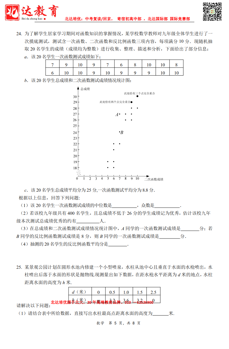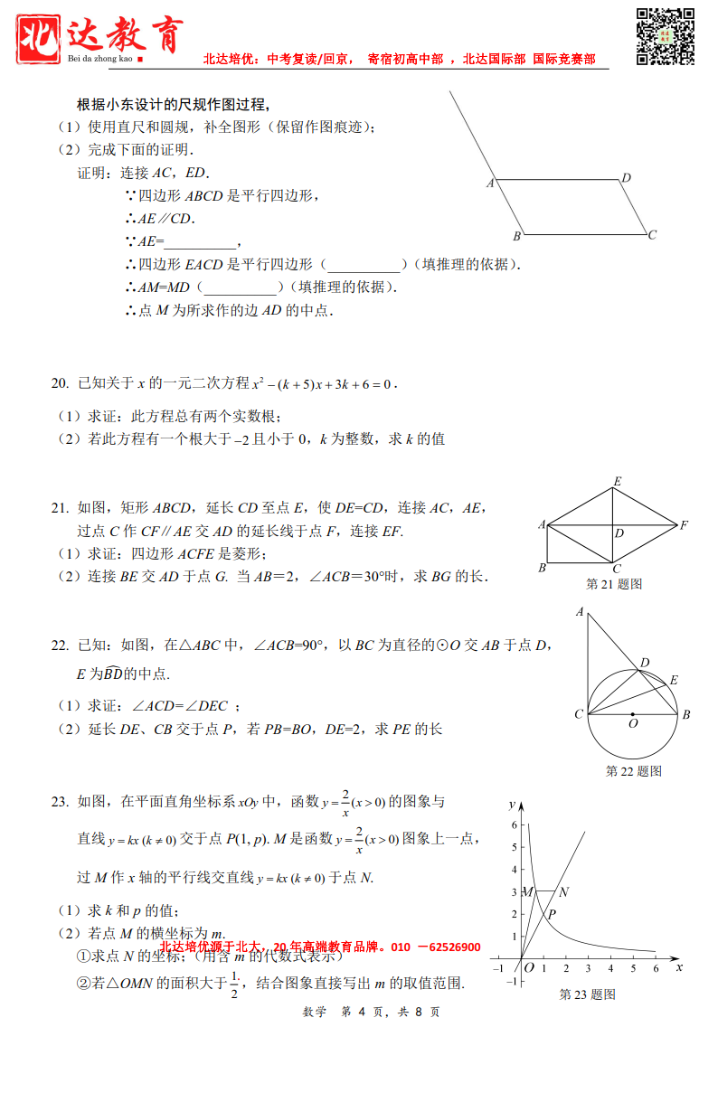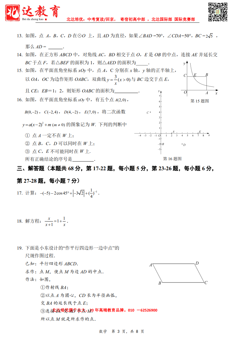 admw360中考网为大家整理了2022~2023学年北京清华附中朝阳学校九年级下学期数学周测,分享给大家。