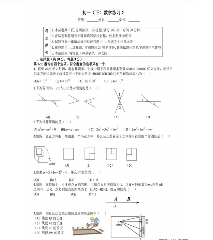 admw360中考网为大家整理了2023人大附中本部初一下册期中数学练习2,分享给大家,希望对大家有所帮助。
