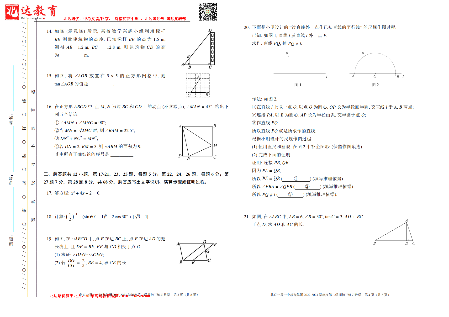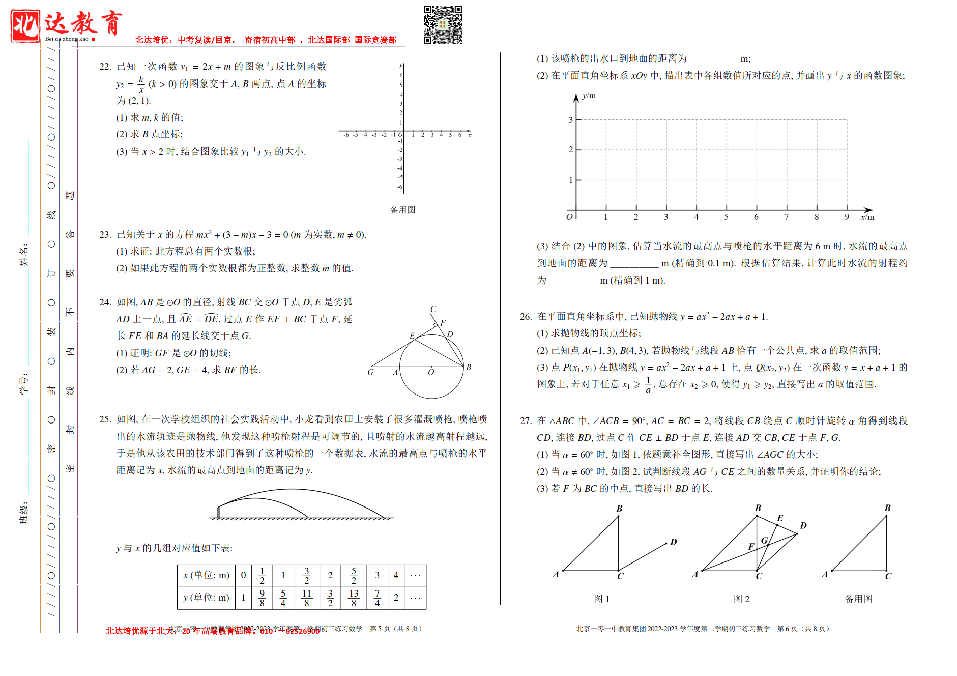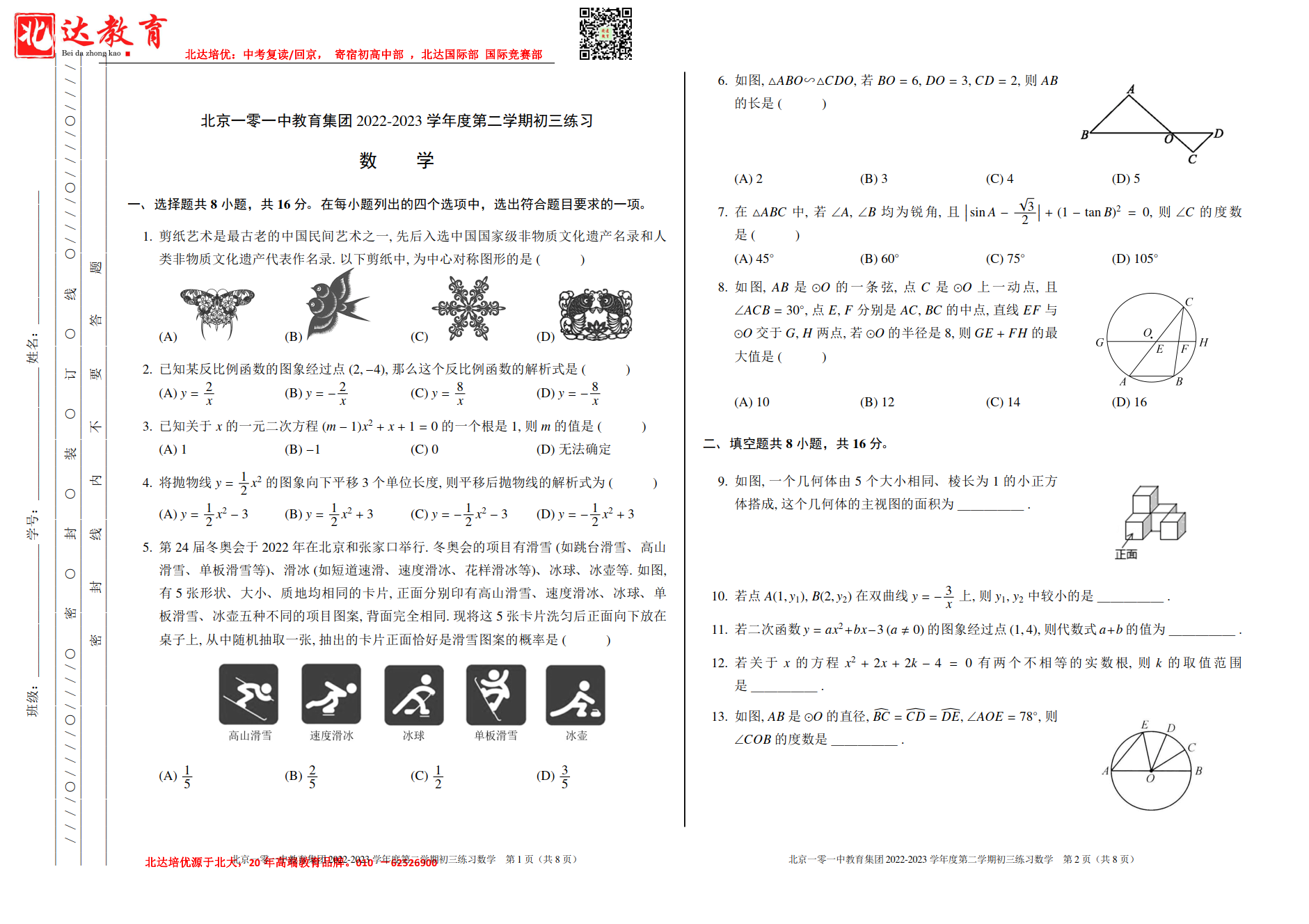 admw360中考网为大家整理了2022-2023学年北京一零一中第二学期初三练习数学试题,分享给大家。