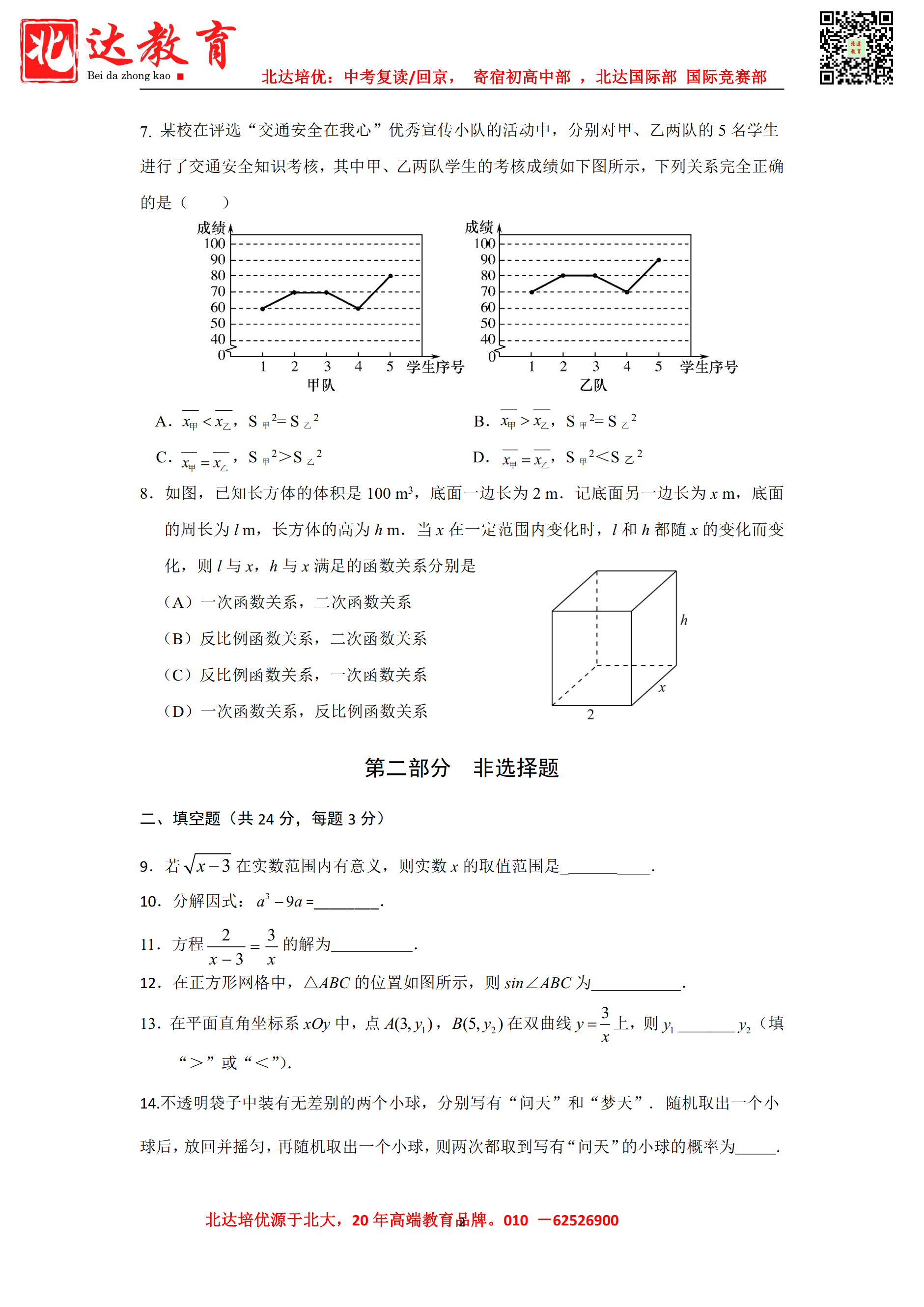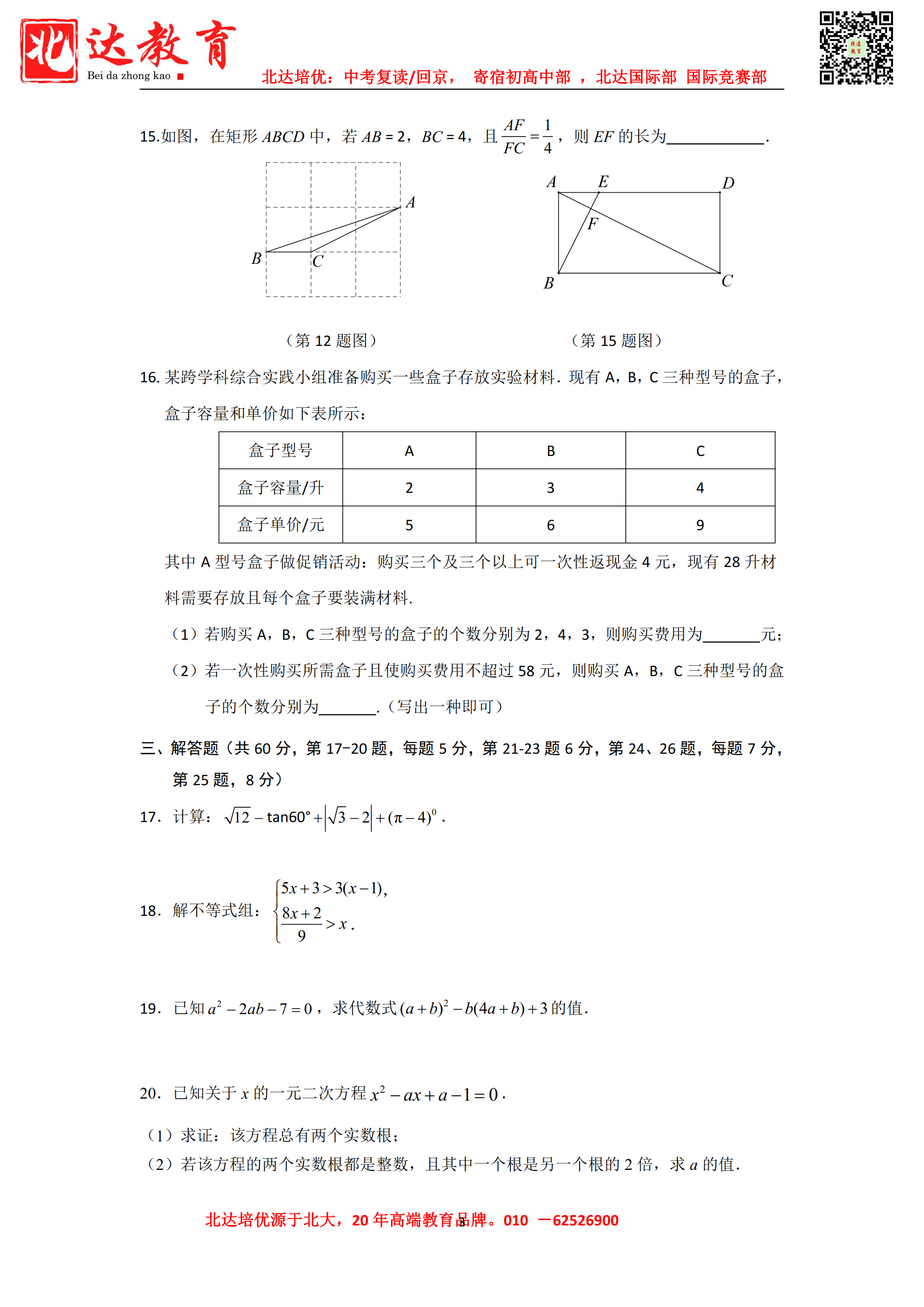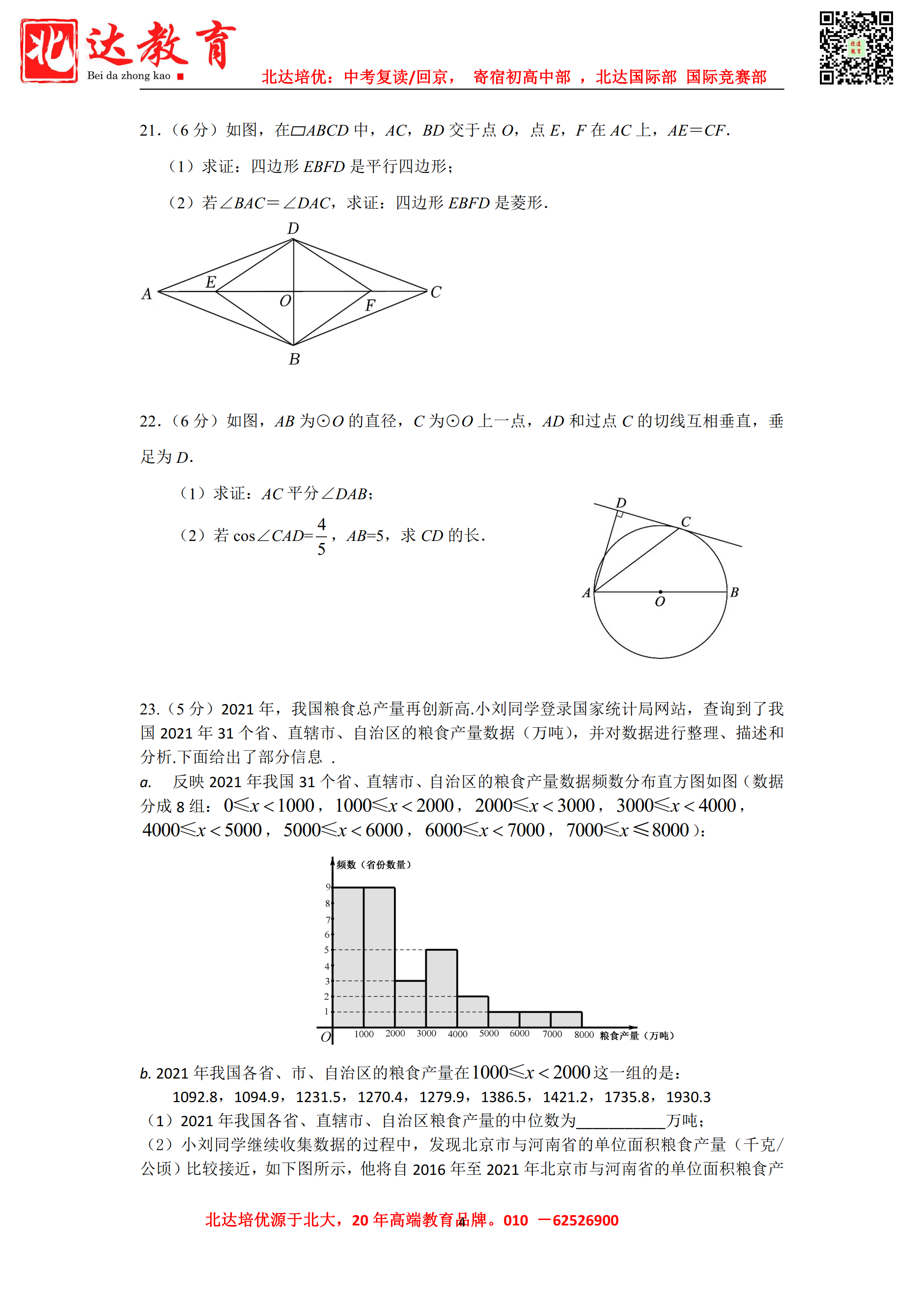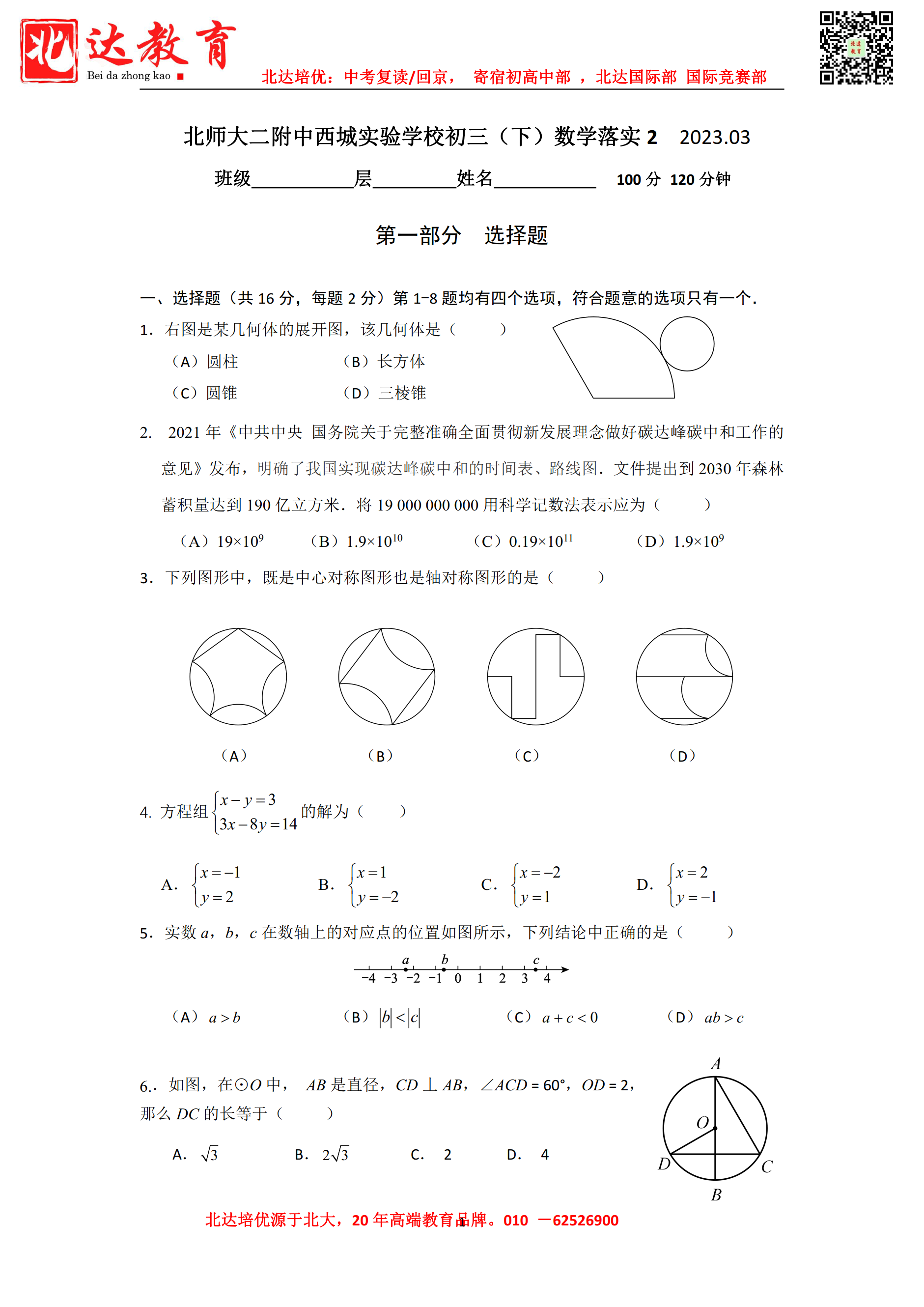 admw360中考网为大家整理了2022~2023学年北师大第二附属中学西城实验学校九年级下数学落实2试题(3月),分享给大家,需要的小伙伴赶紧下载练习起来吧。