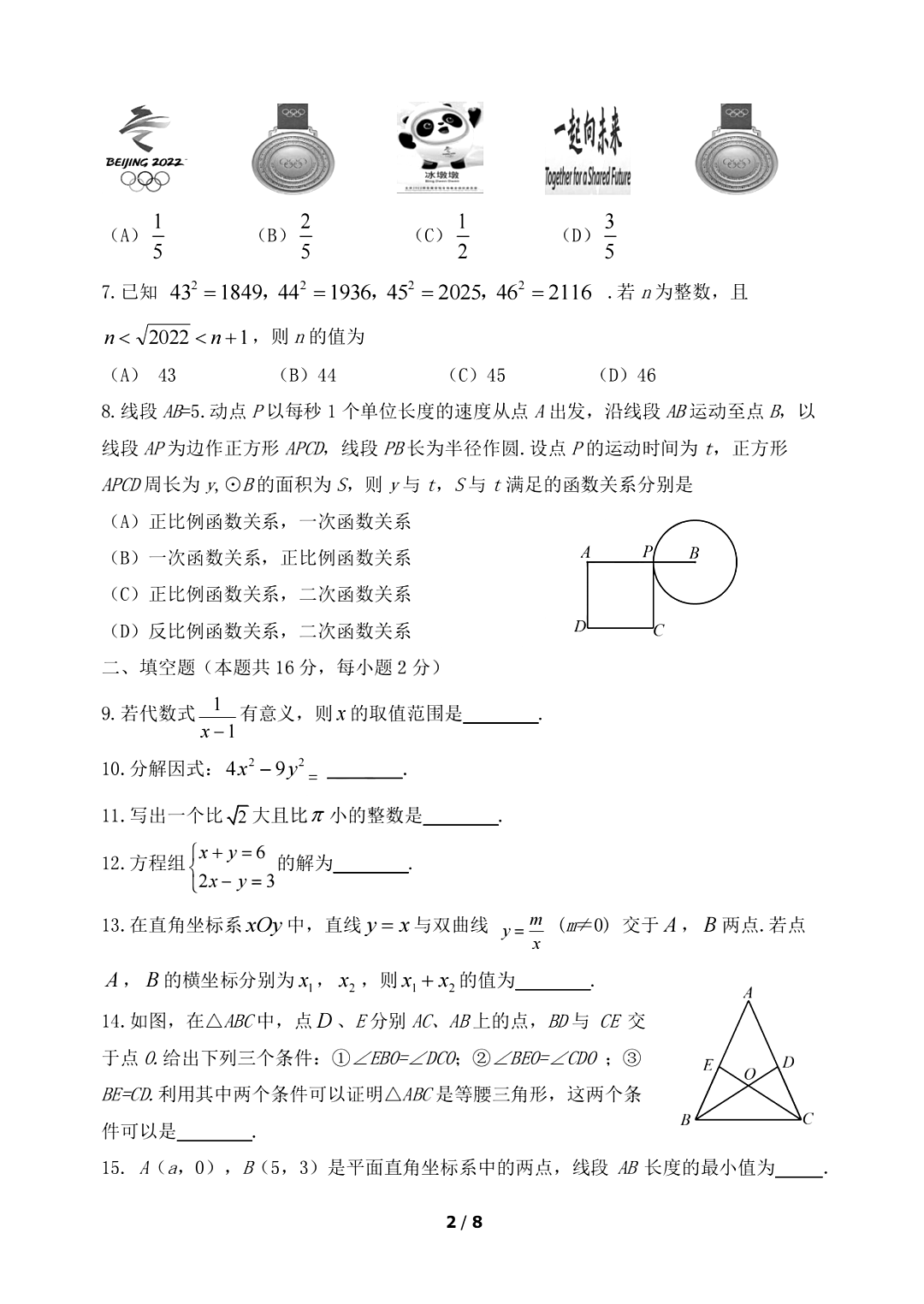 2022-2023学年北京各区初二上期末试卷&答案汇总