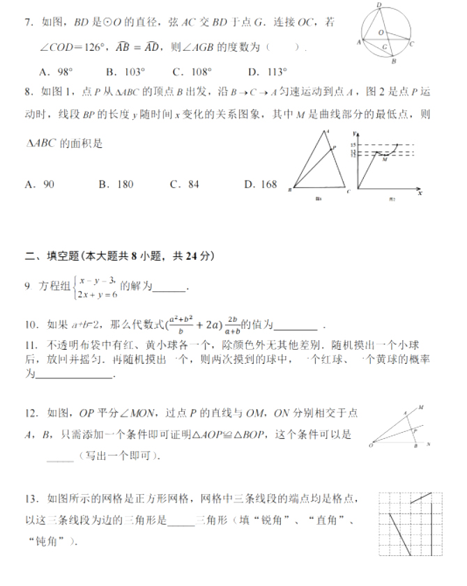 新疆维吾尔自治区2022年中考各科试题及参考答案