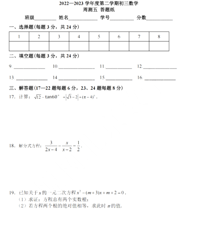 admw360中考网整理了2022-2023学年北京市东城二中九年级下数学3月考试卷,分享给大家。需要的同学赶紧下载练习起来吧。
