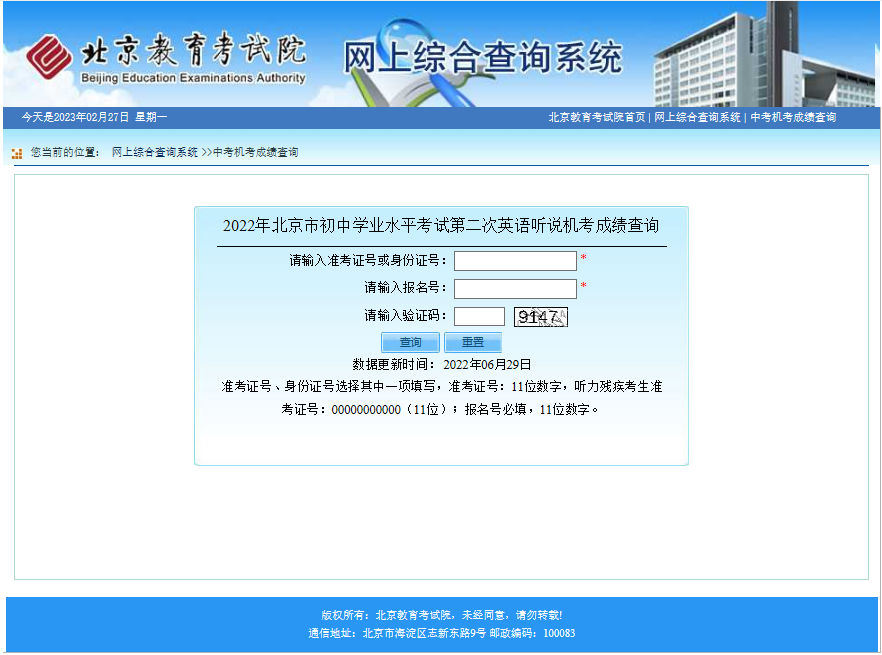 2023北京英语听说考成绩查询时间是3月22日12:00。