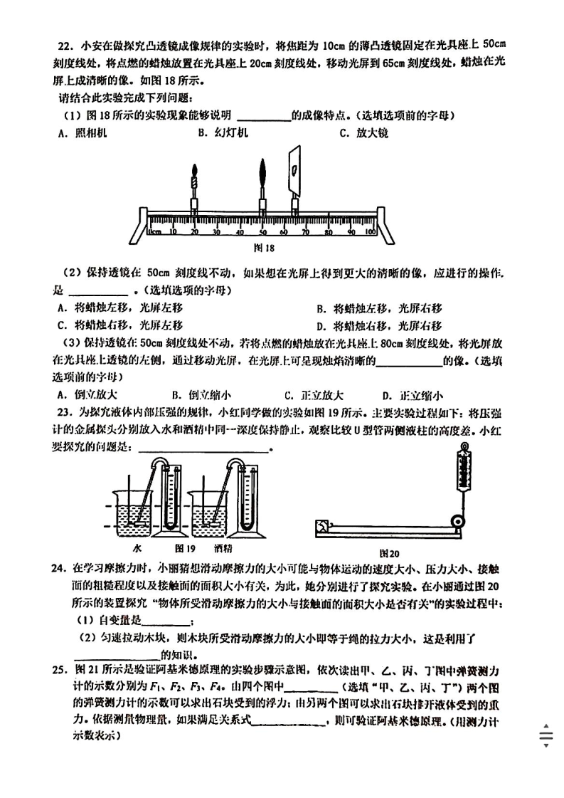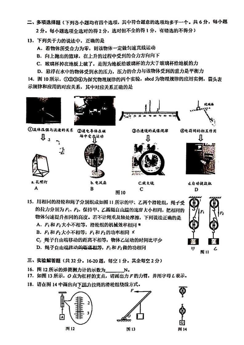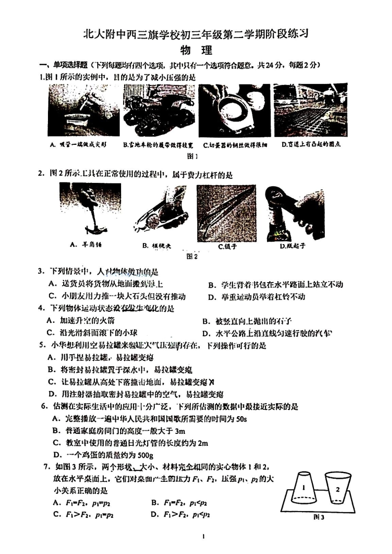 2022-2023学年北大附中西三旗学校初三物理零摸试题已公布,admw360中考网第一时间为大家整理了试卷及答案,分享给大家。