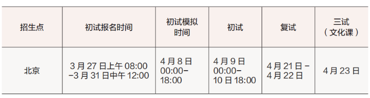考试分为初试、复试、三试( 文化课 )三部分,初试为线上考试,初试通过后方可参加复试三试( 文化课 ),复试及三试( 文化课 ) 考试形式将另行通知。