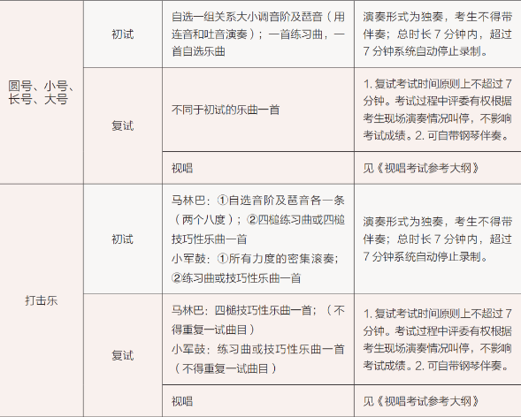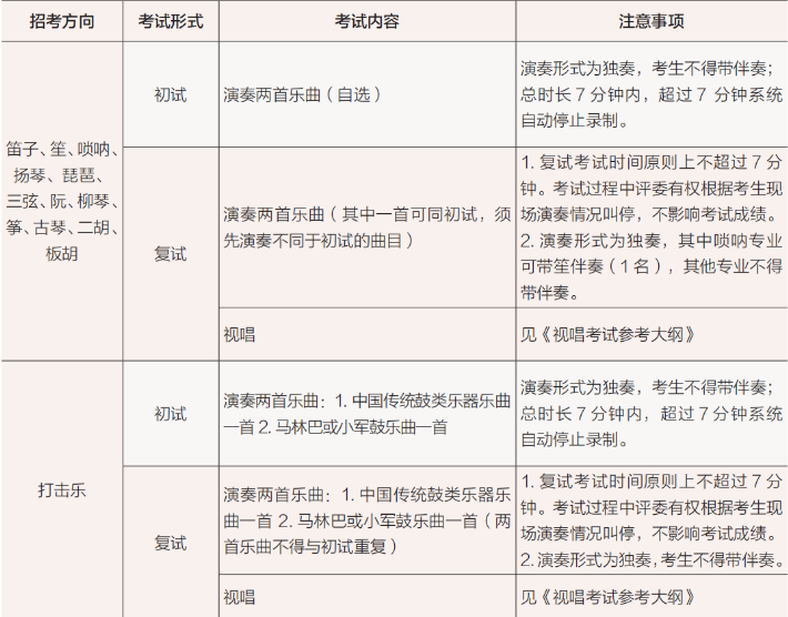 1.考生赴考的往返路费、体检费、食宿费和发声器官检查费均自理。所需乐器一律自备( 钢琴、竖琴、中国大鼓、排鼓、小军鼓、马林巴除外 )。
