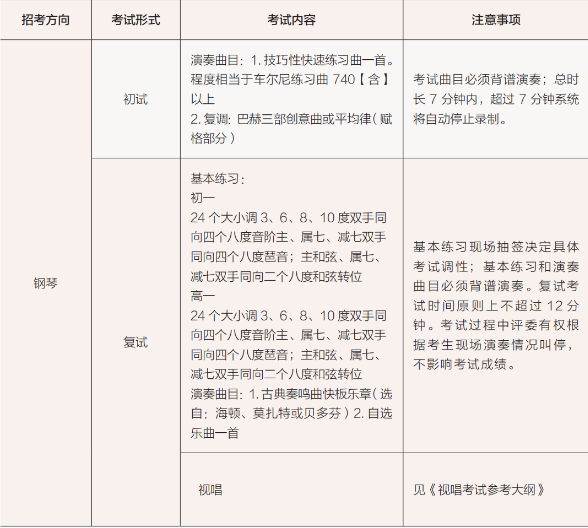 身体要求:身心健康,无任何不适宜从事音乐专业学习和集体生活的疾病与缺陷。