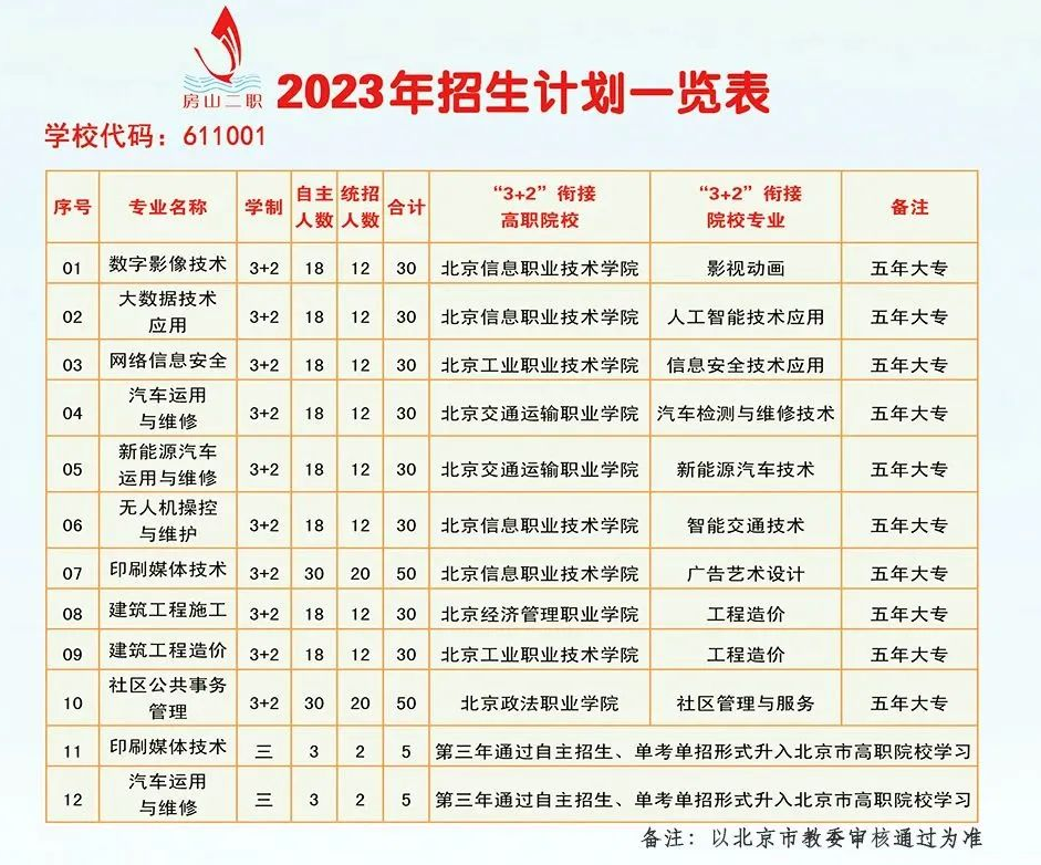2023北京市房山区第二职业高中招生简章出炉