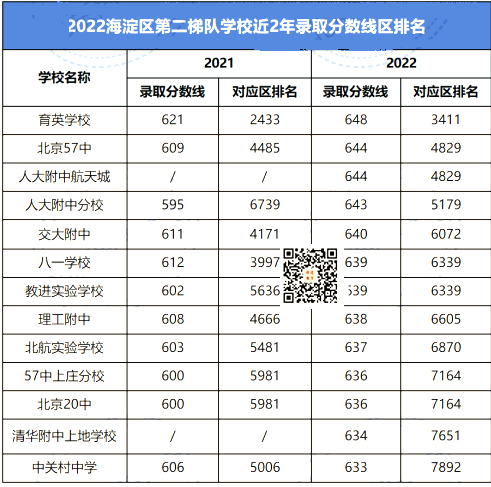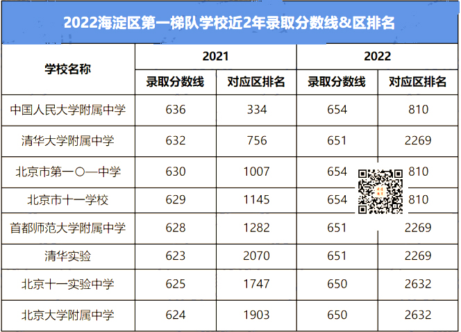 想要考入上述海淀区第一梯队学校,需要中考录取分数线都在650分及以上,区排名2632名以内。