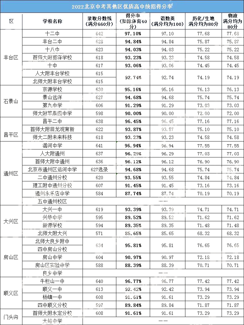 距离2023年北京中考还剩不到一百天,上北京各区重点校中考各科需要多少分才可以?今天admw360中考网就为大家整理了2022年北京中考各区优质高中的统招得分率,各科要考多少分才能进入心仪的优质高中?一起来看!