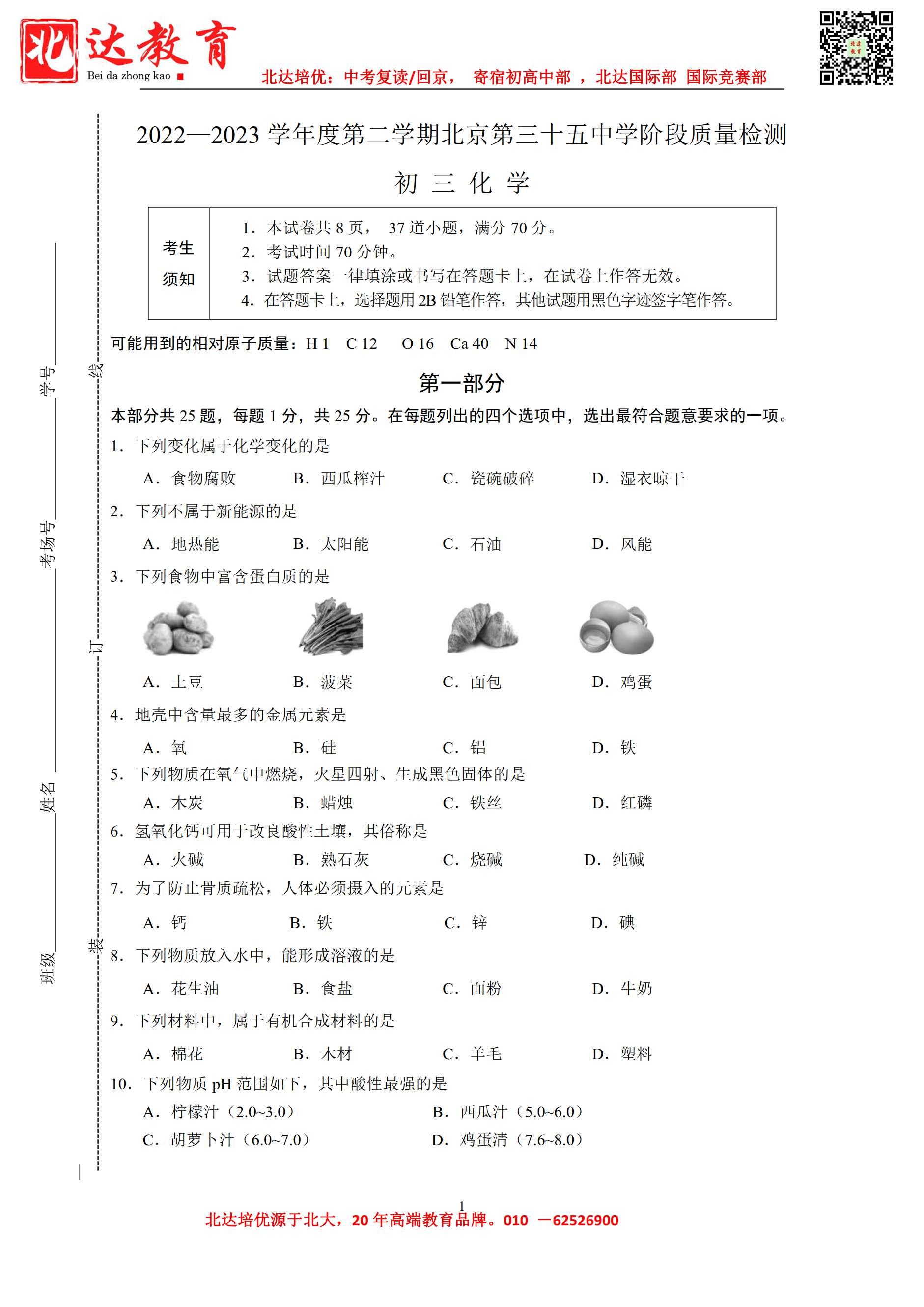 admw360中考网整理了2022-2023学年北京第三十五中学九年级下3月月考化学试题,分享给大家。需要的同学赶紧下载练习起来吧。