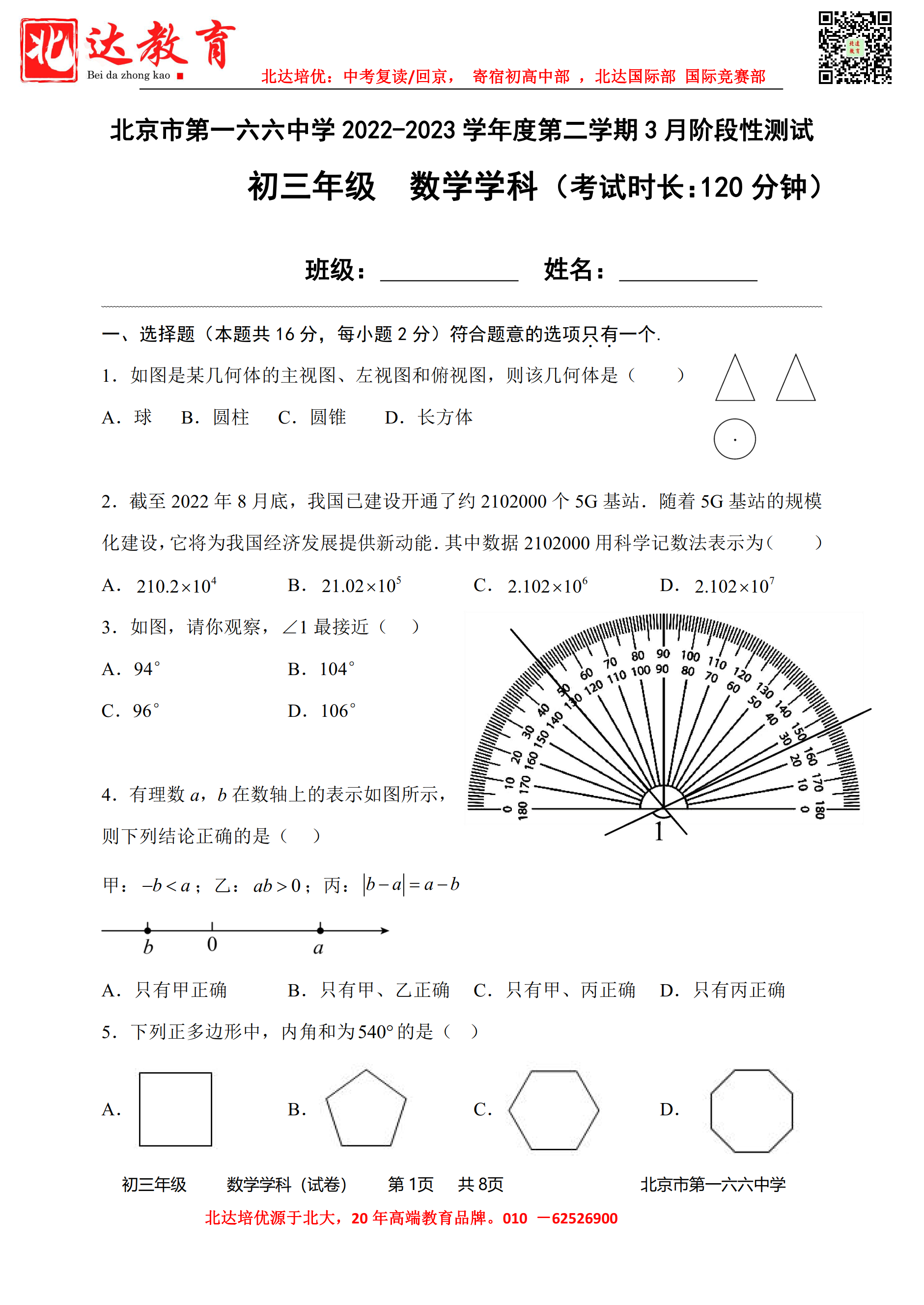admw360中考网整理了2022-2023学年北京第一六六中学九年级下3月月考数学试题,分享给大家。需要的同学赶紧下载练习起来吧。