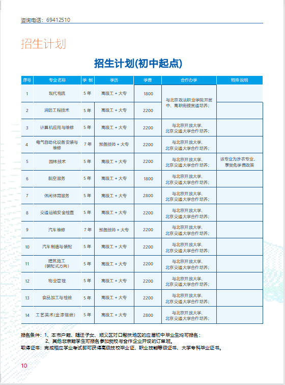 顺义区人力社保局高级技工学校招生计划
