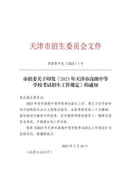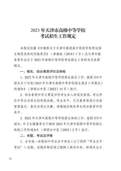 近日,天津发布了《2023年天津市高级中等学校考试招生工作规定》,考试分值、时间公布!admw360中考网为大家整理了内容详情,一起来看: