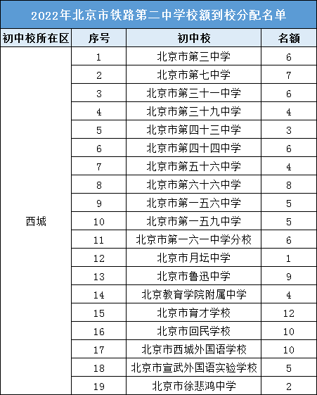 想通过校额到校升入铁路二中的同学要注意自己所在初中校还有没有校额到校名额,详细分配名额对比见上图。