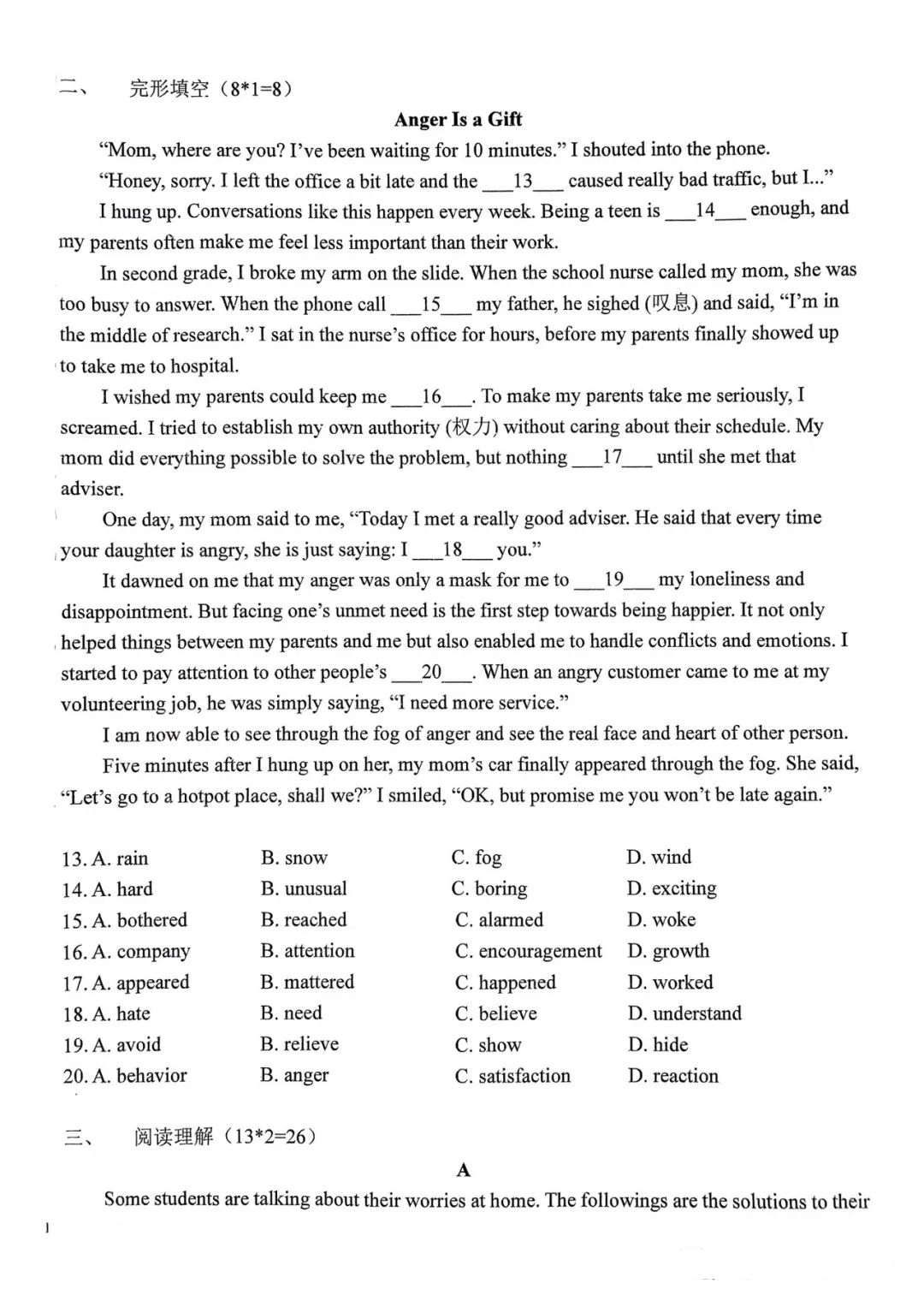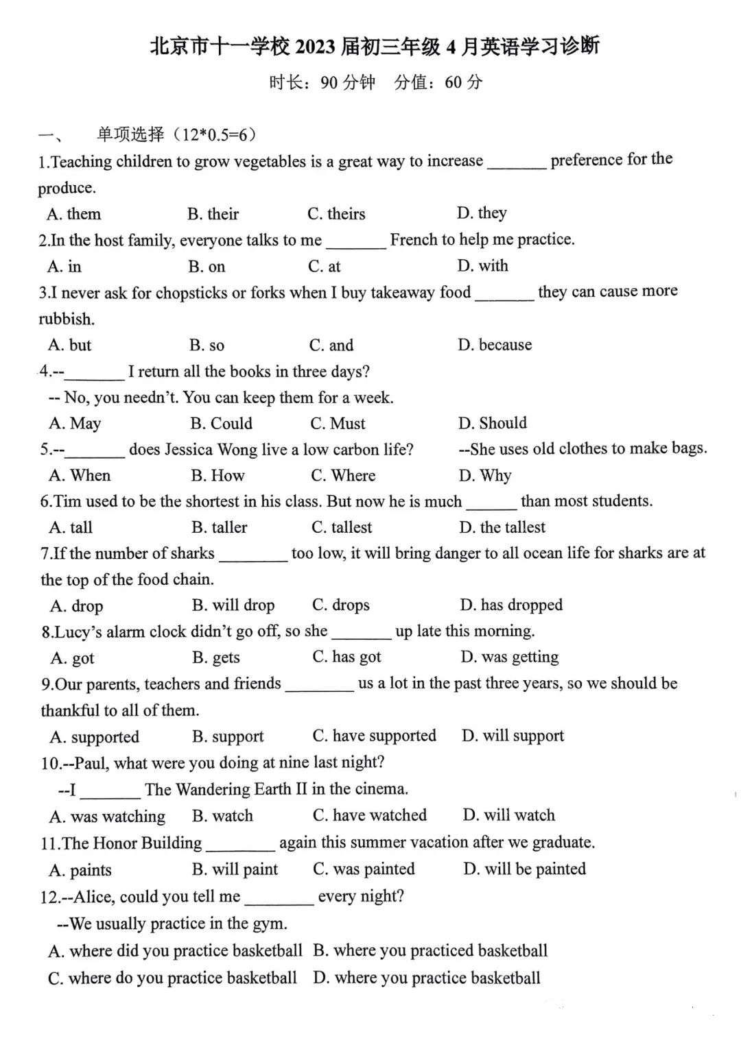 admw360中考网整理了2023北京市十一学校初三年级4月英语学习诊断试题及答案,分享给大家。需要的同学赶紧下载练习起来吧。