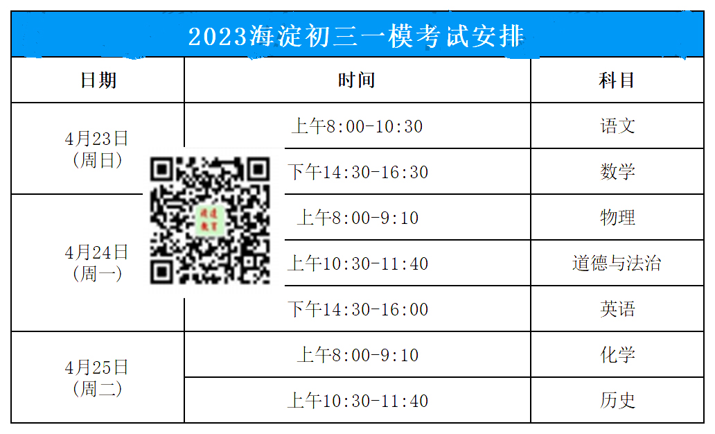 首页 中学资讯 2023北京海淀区初三一模考试安排