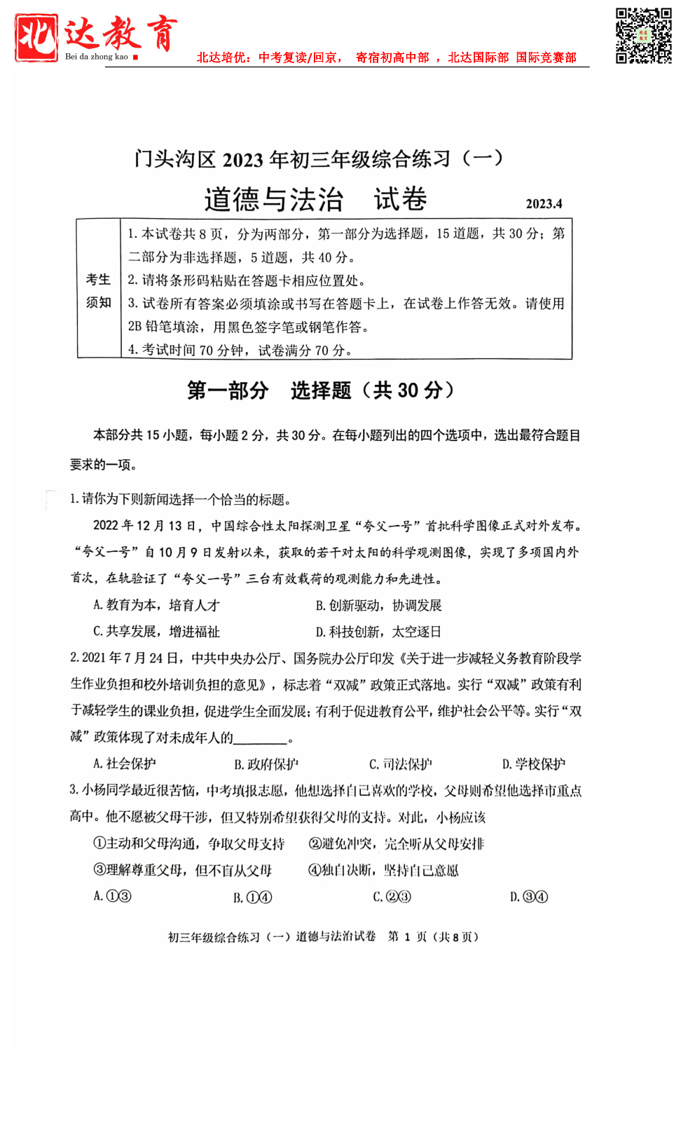 相关阅读:2023北京各区初三一模试题及答案汇总