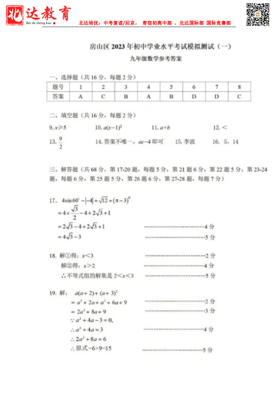 相关阅读:2023北京各区初三一模试题及答案汇总