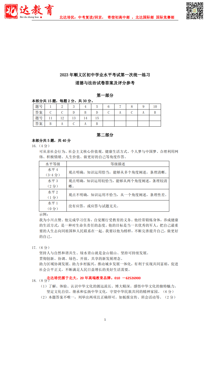 admw360中考网第一时间为大家整理了2023北京顺义区初三一模道法试题及答案,分享给大家。