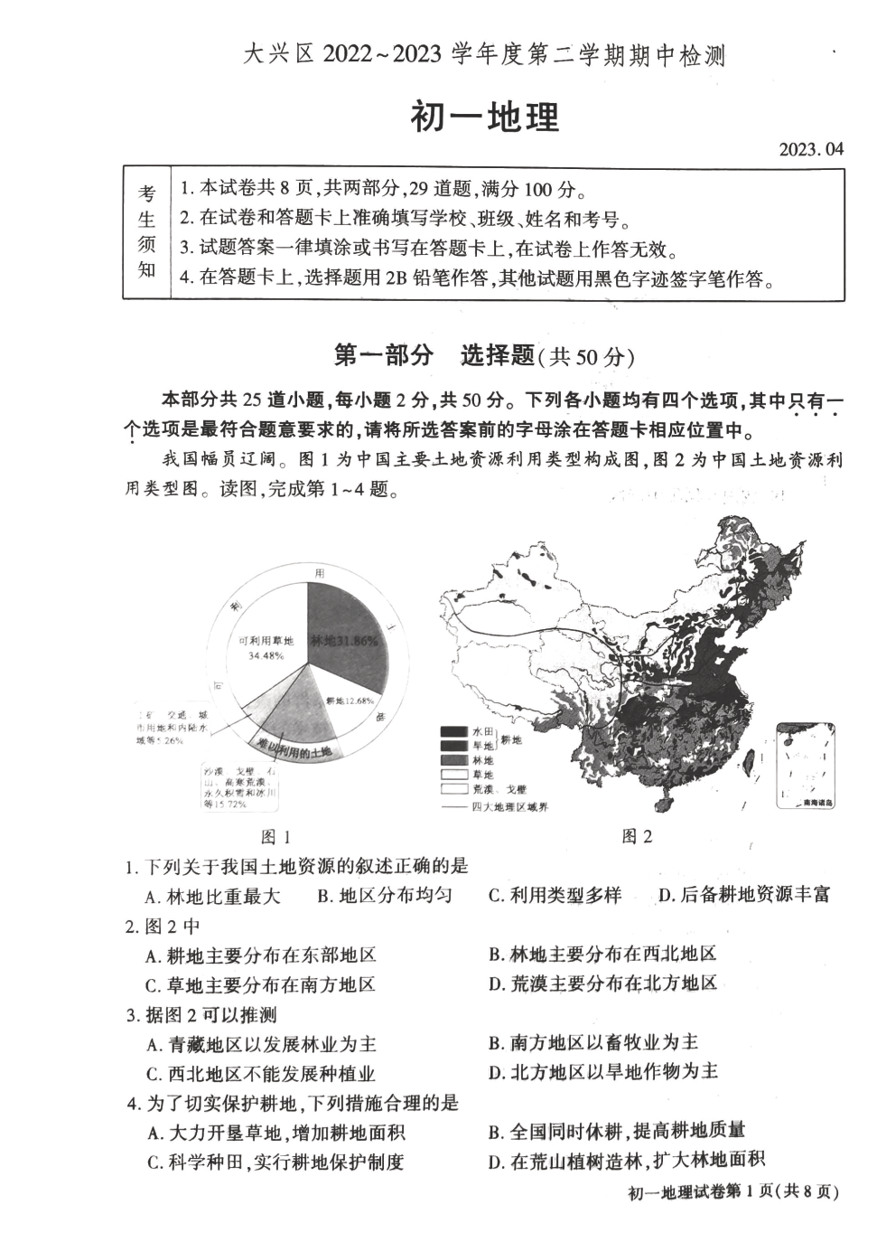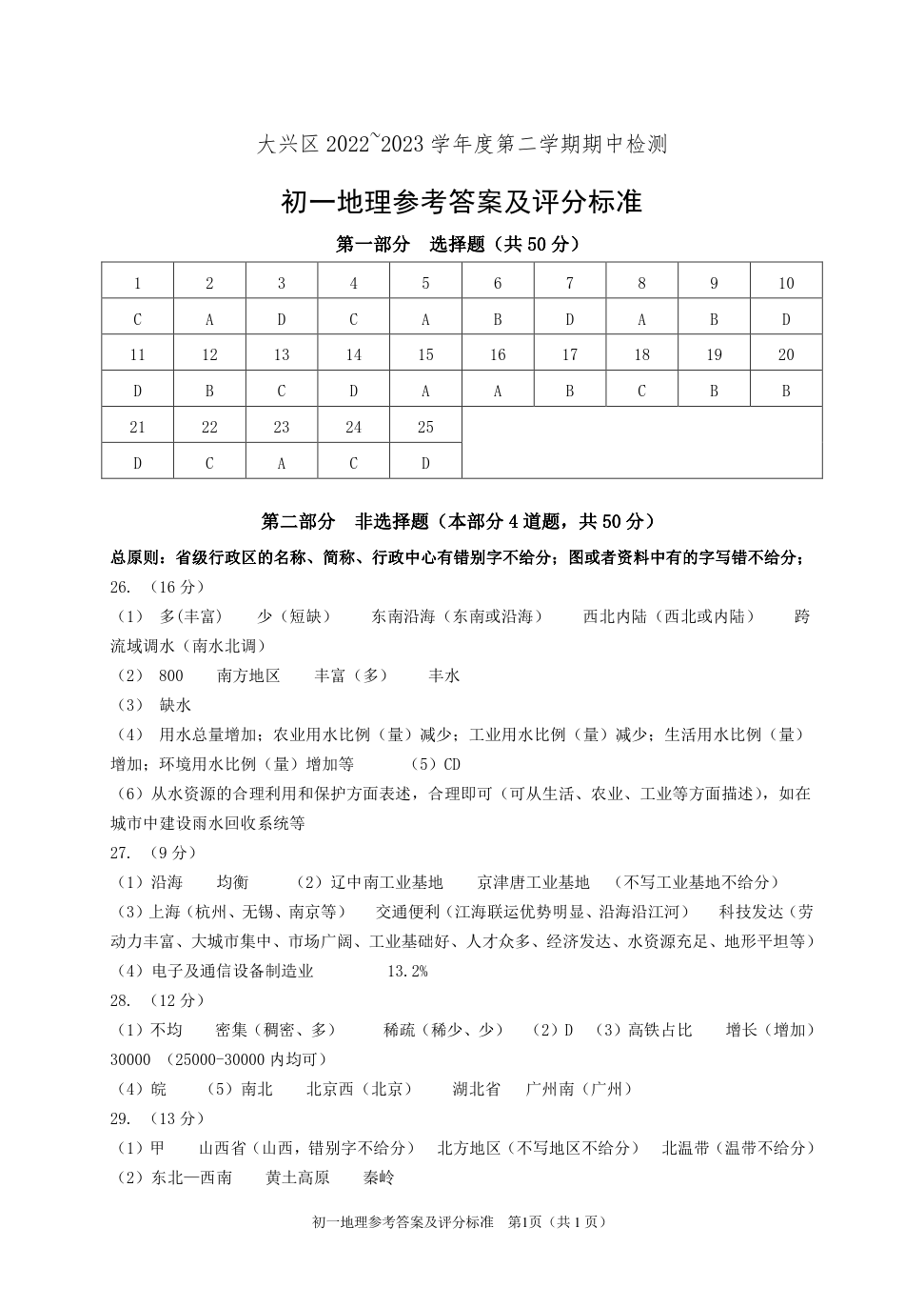 2023学年北京大兴区初一地理期中考考试已结束,admw360中考网为大家整理了试题及答案,分享给大家。