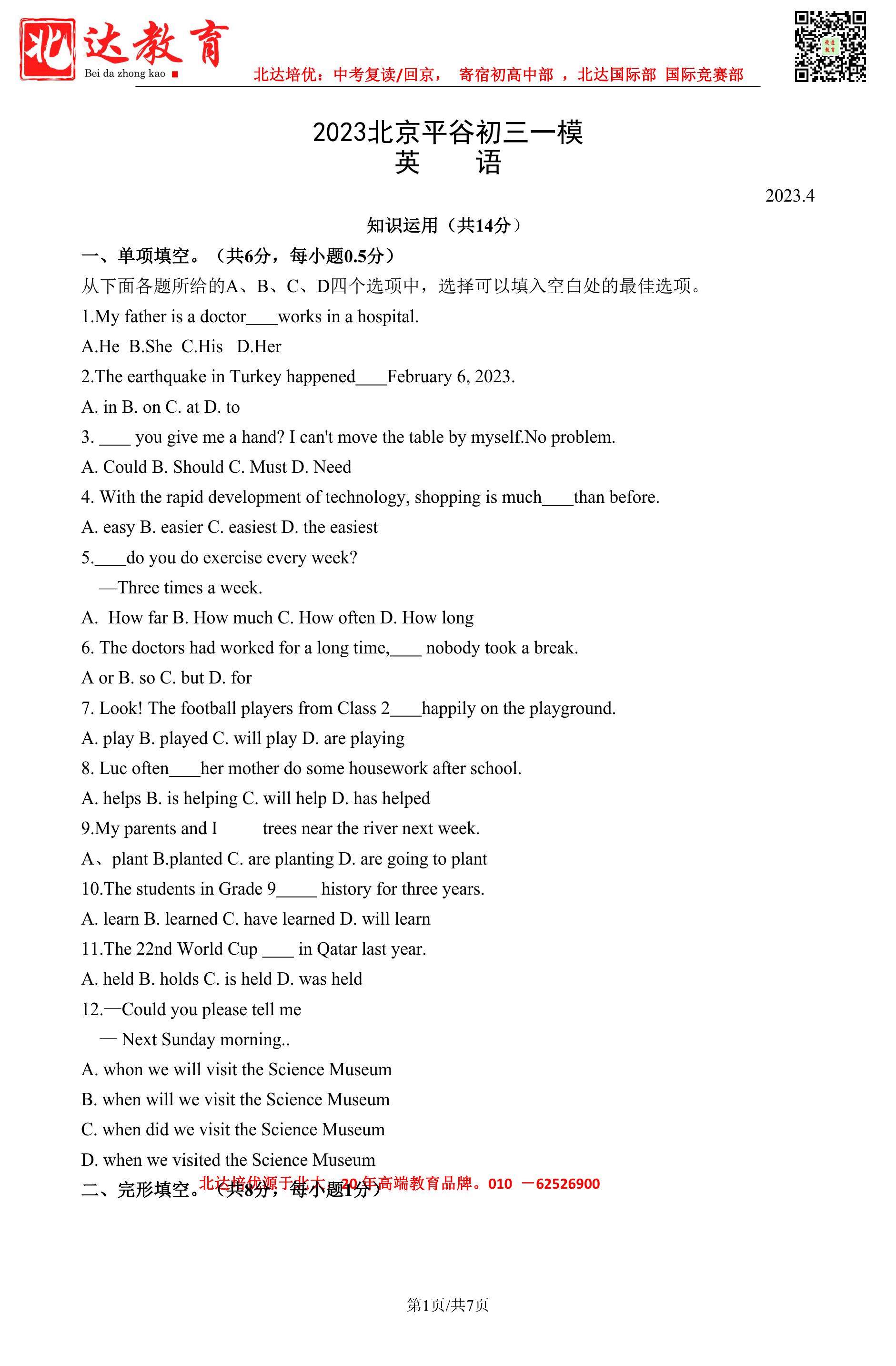 admw360中考网为大家整理了2023北京平谷区初三一模英语试题及答案,分享给大家。