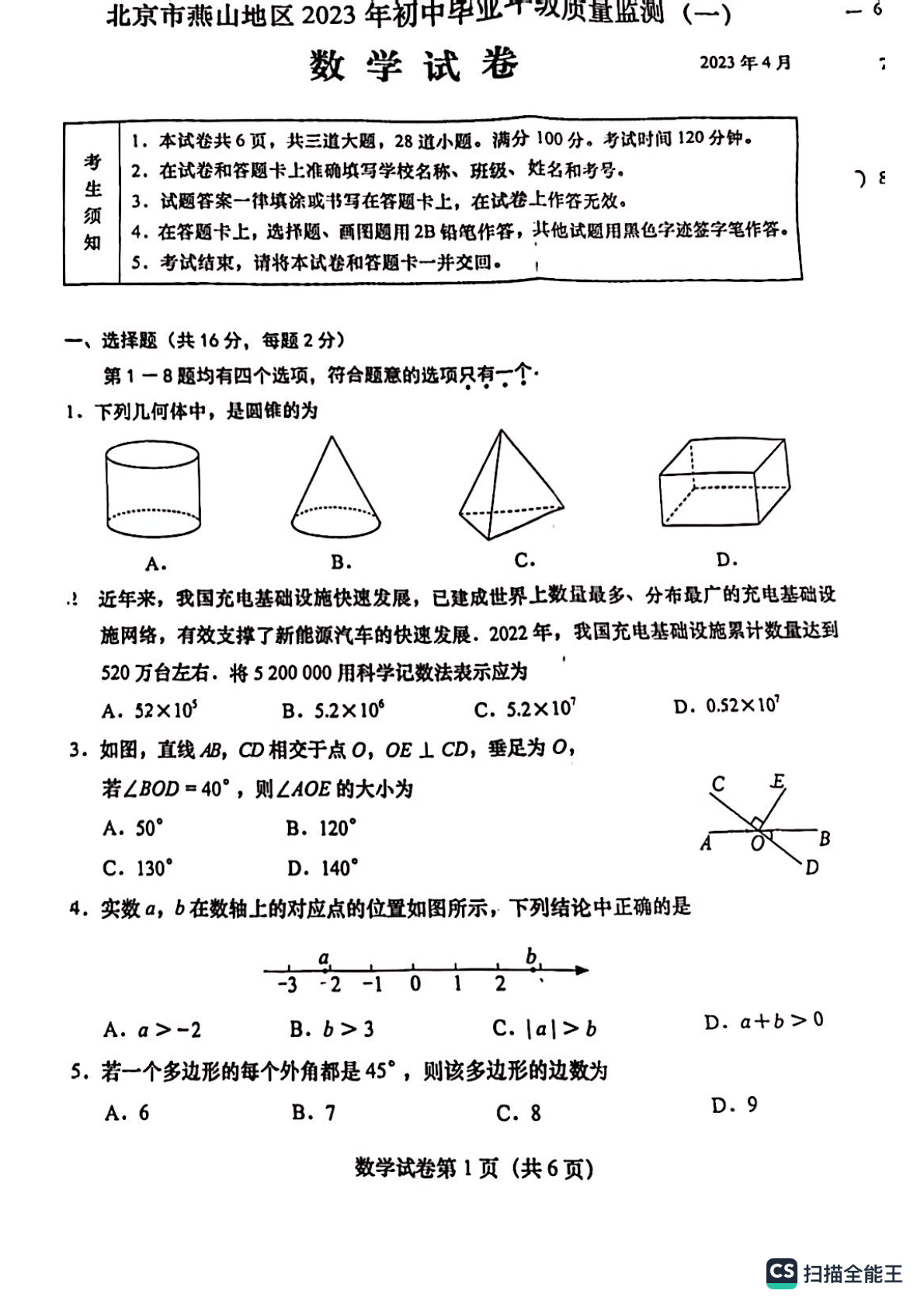 admw360中考网为大家整理了2023北京燕山区初三一模数学试题及答案,分享给大家。