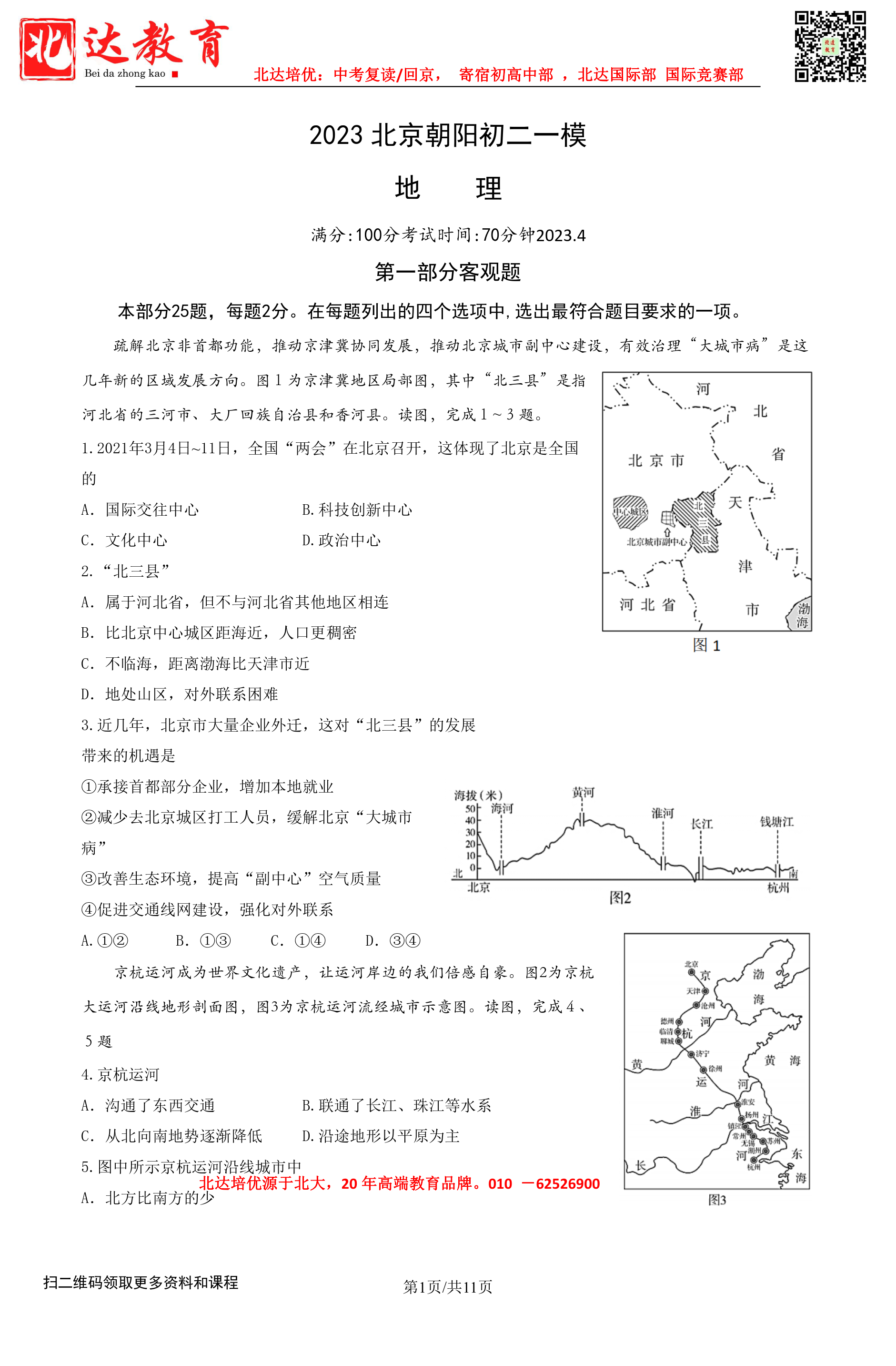 2023北京朝阳区初二下地理期中考已结束,admw360中考网为大家整理了 试题及答案,分享给大家。
