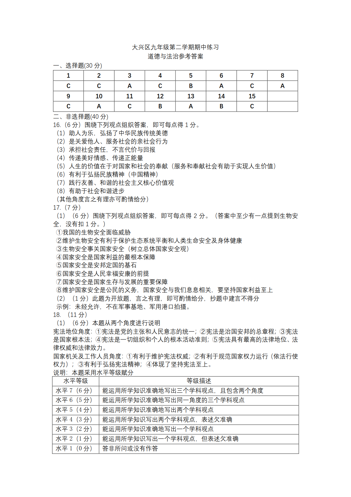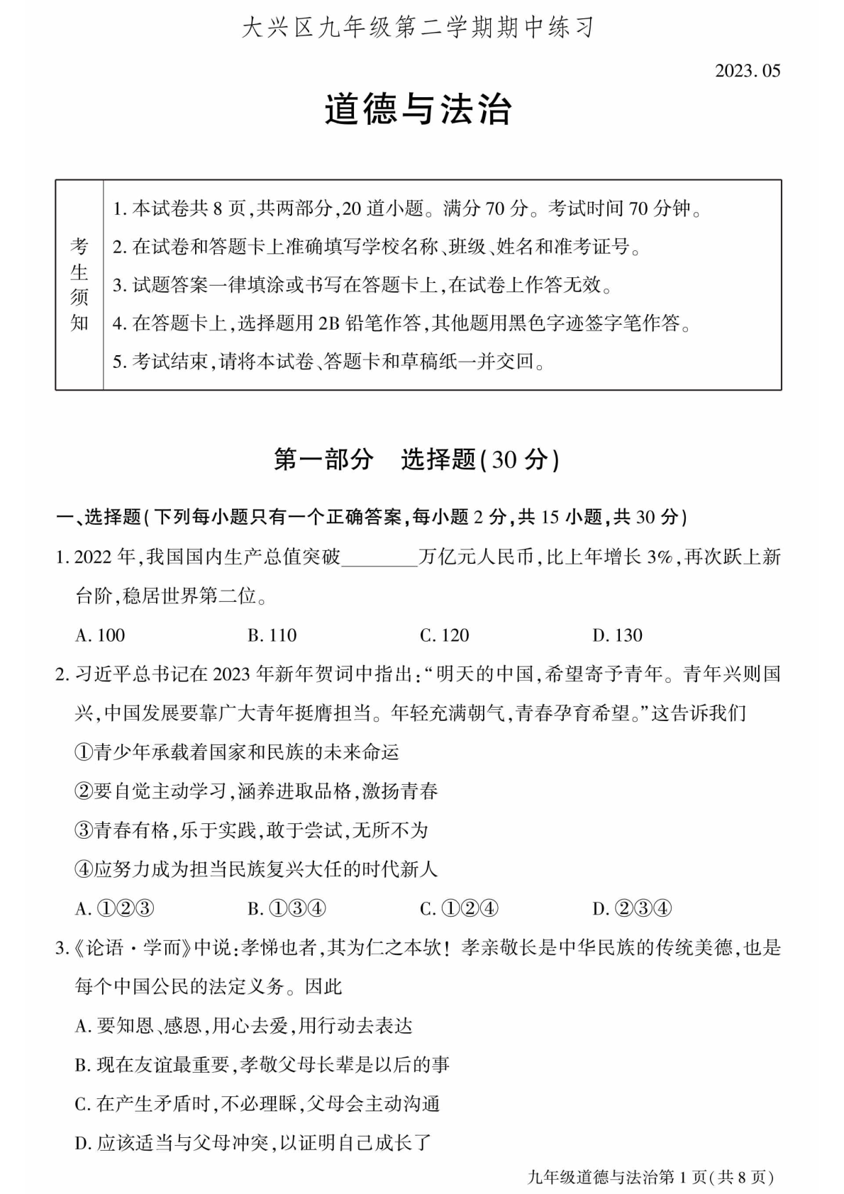 admw360中考网为大家整理了2023北京大兴区初三一模道法试题及答案,分享给大家。