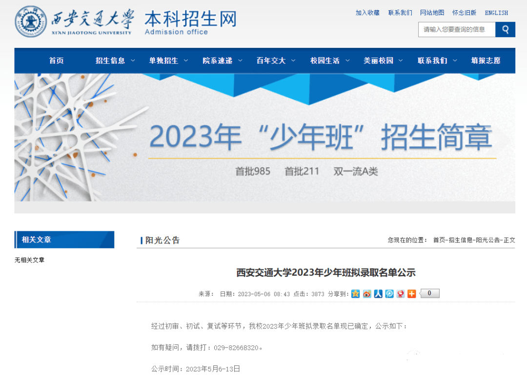 近日,西安交通大学公布了2023年少年班拟录取名单,经过初审、初试、复试等环节,今年共拟录取学生221人。今年广东省创历史新高!共有6人被西安交大少年班录取!最小的12岁!