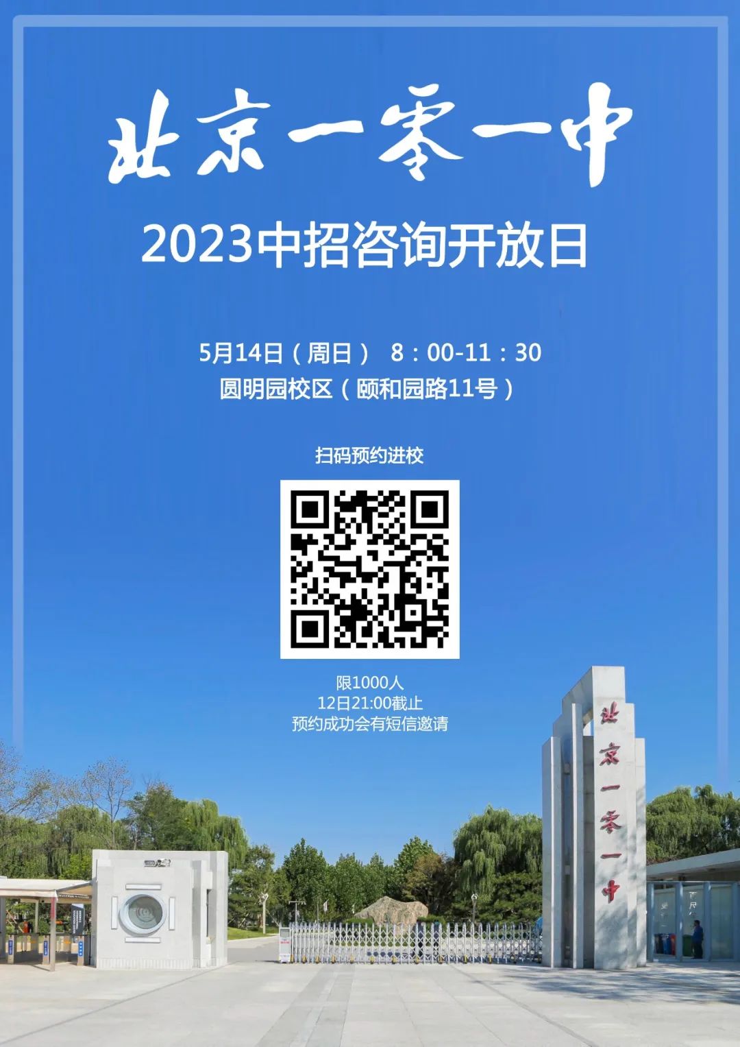 2023北京101校园开放日来了:5月14日 8:00-11:30,扫码预约,如果没约上,建议带孩子直接去。