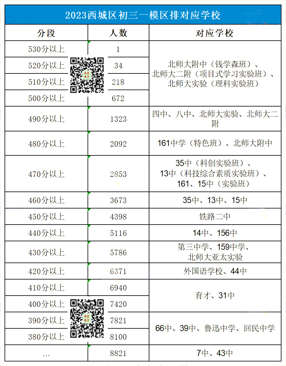 2023北京西城区初三一模区排名对应目标校已出,admw360中考网为大家整理了详细表格,一起来看: