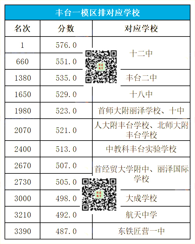2023北京丰台区初三一模区排名对应目标校已出,admw360中考网为大家整理了详细表格,一起来看: