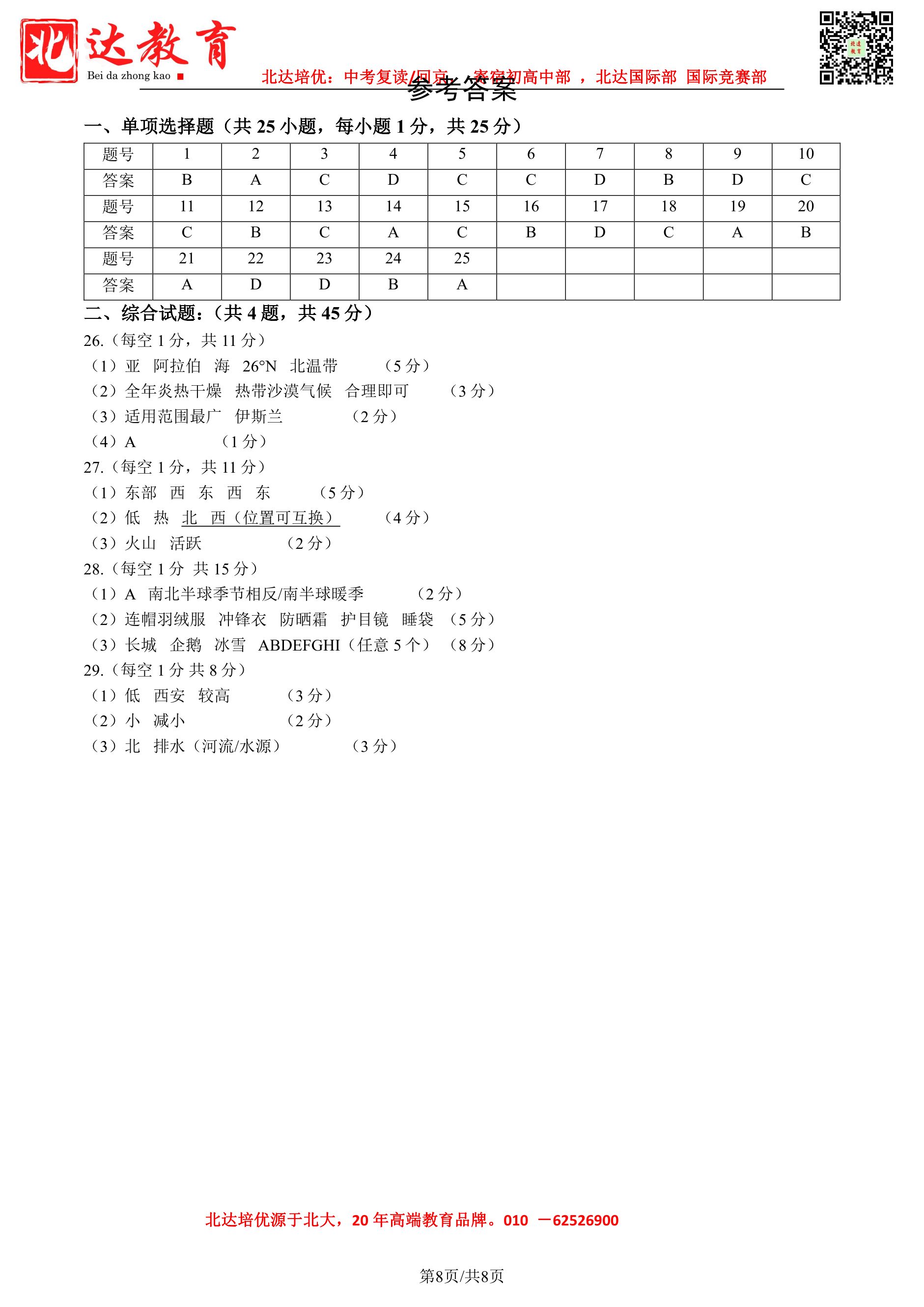 2023北京延庆区初二一模地理考已结束,admw360中考网为大家整理了 试题及答案,分享给大家。