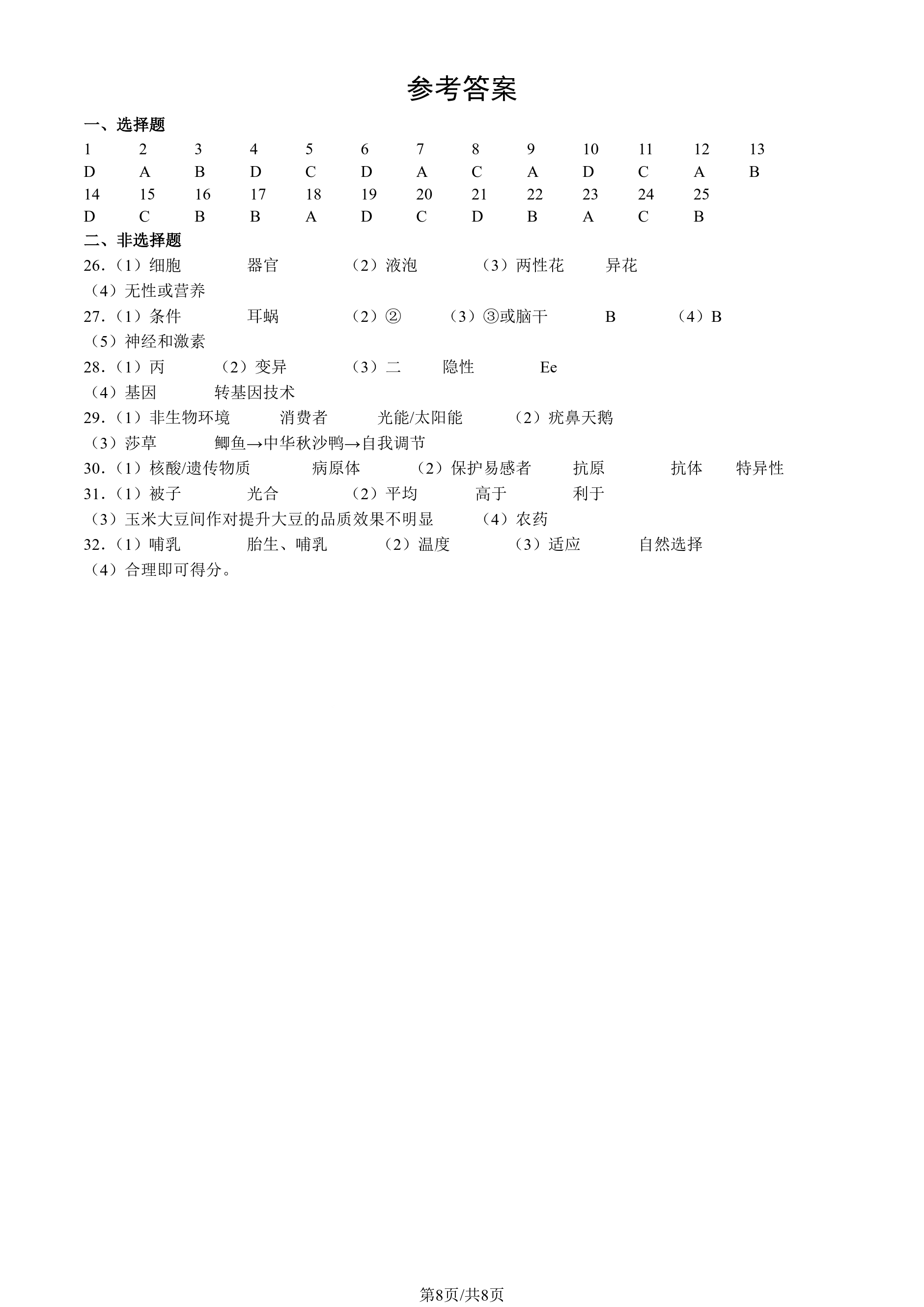 2023北京平谷区初二一模生物考已结束,admw360中考网为大家整理了 试题及答案,分享给大家。