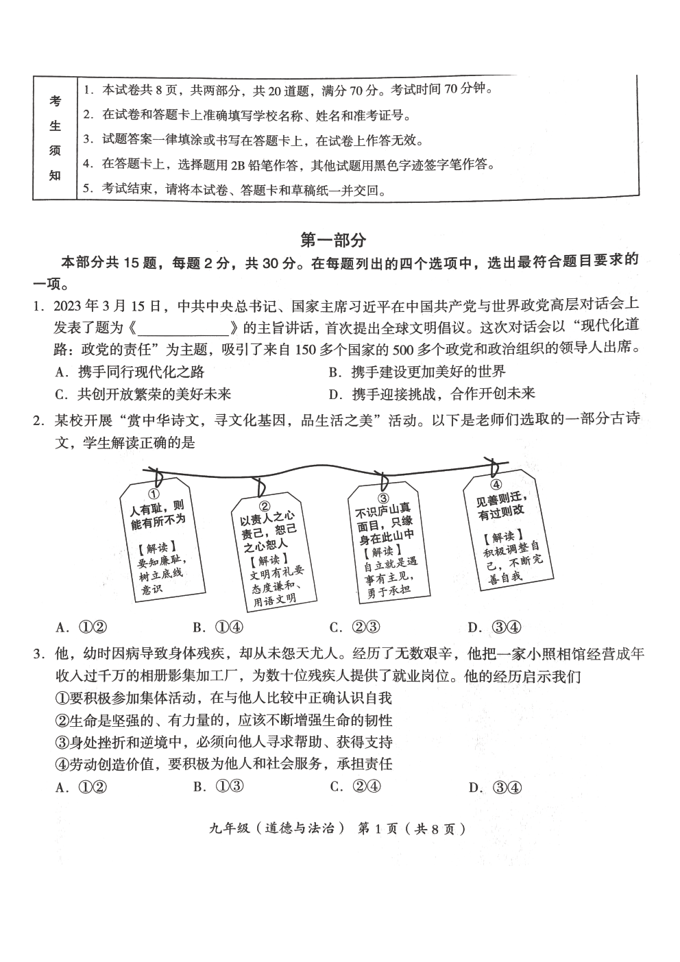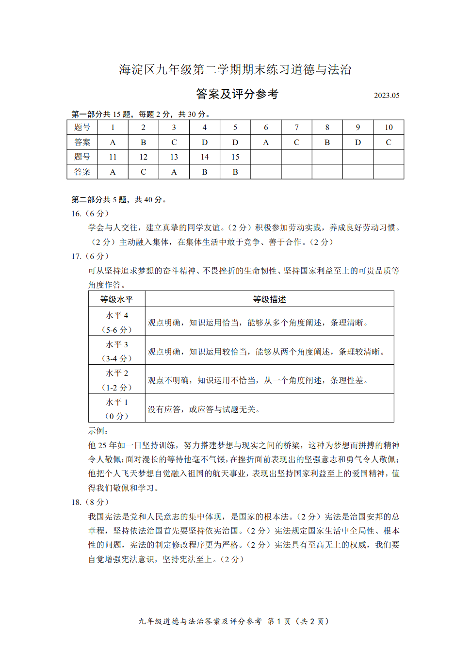 2023北京海淀区初三二模正在进行,admw360中考网为大家整理了道法试题及答案,分享给大家。