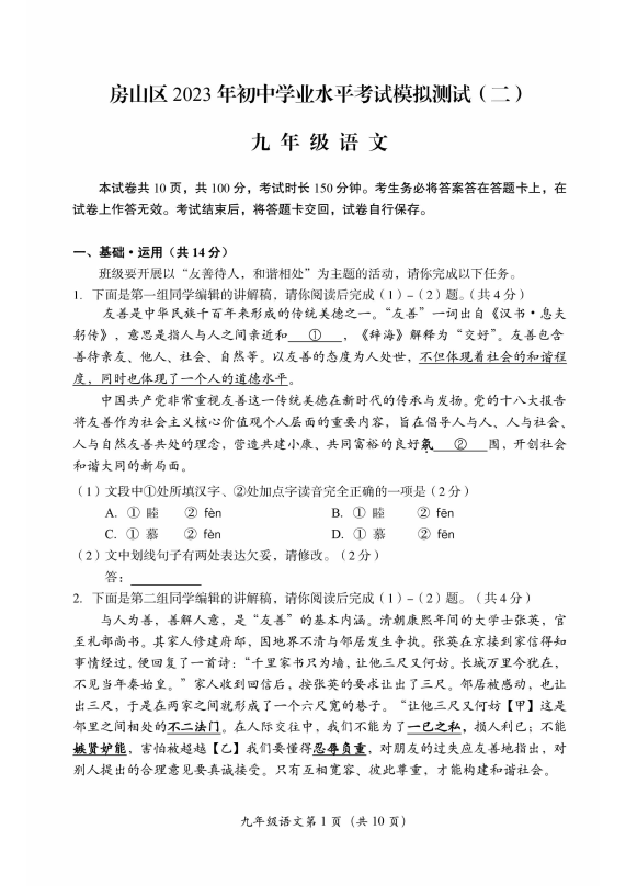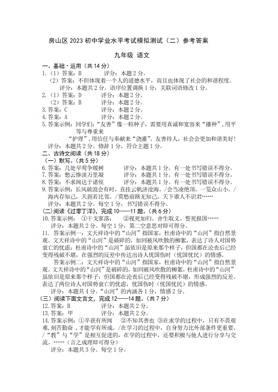 2023北京房山区初三二模正在进行,admw360中考网为大家整理了语文试题及答案,分享给大家。
