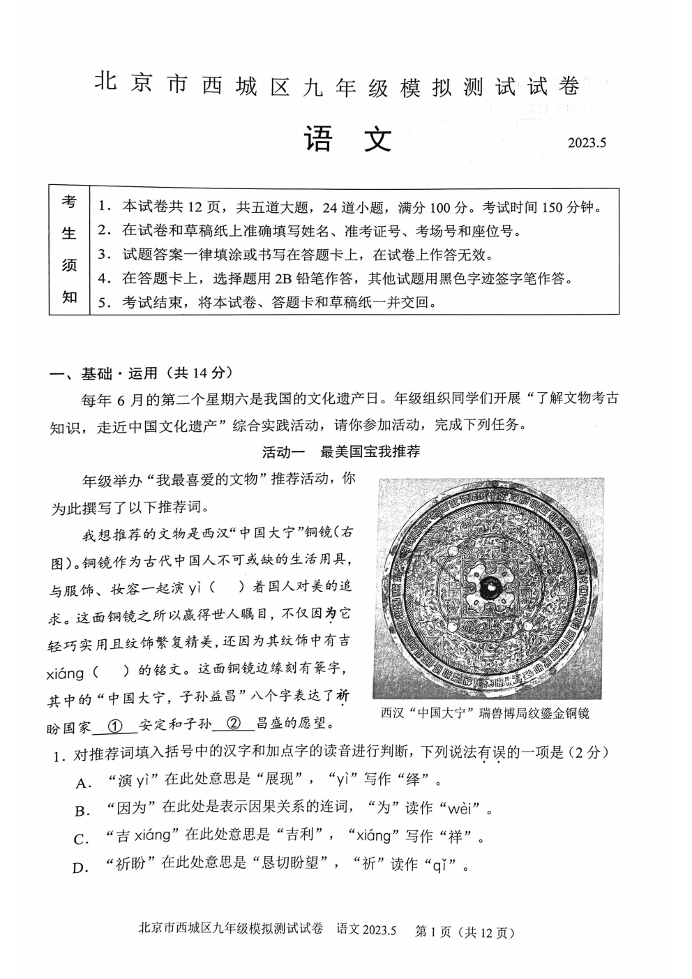 2023北京西城区初三二模正在进行,admw360中考网为大家整理了语文试题及答案,分享给大家。