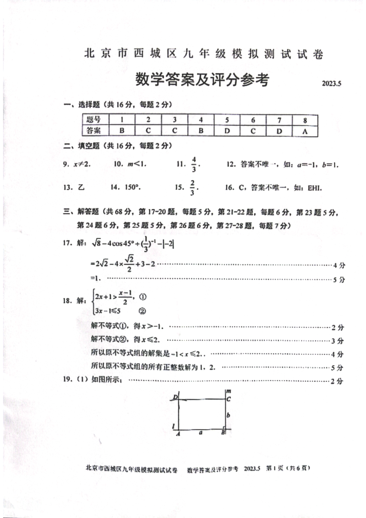 2023北京西城区初三二模正在进行,admw360中考网为大家整理了数学试题及答案,分享给大家。