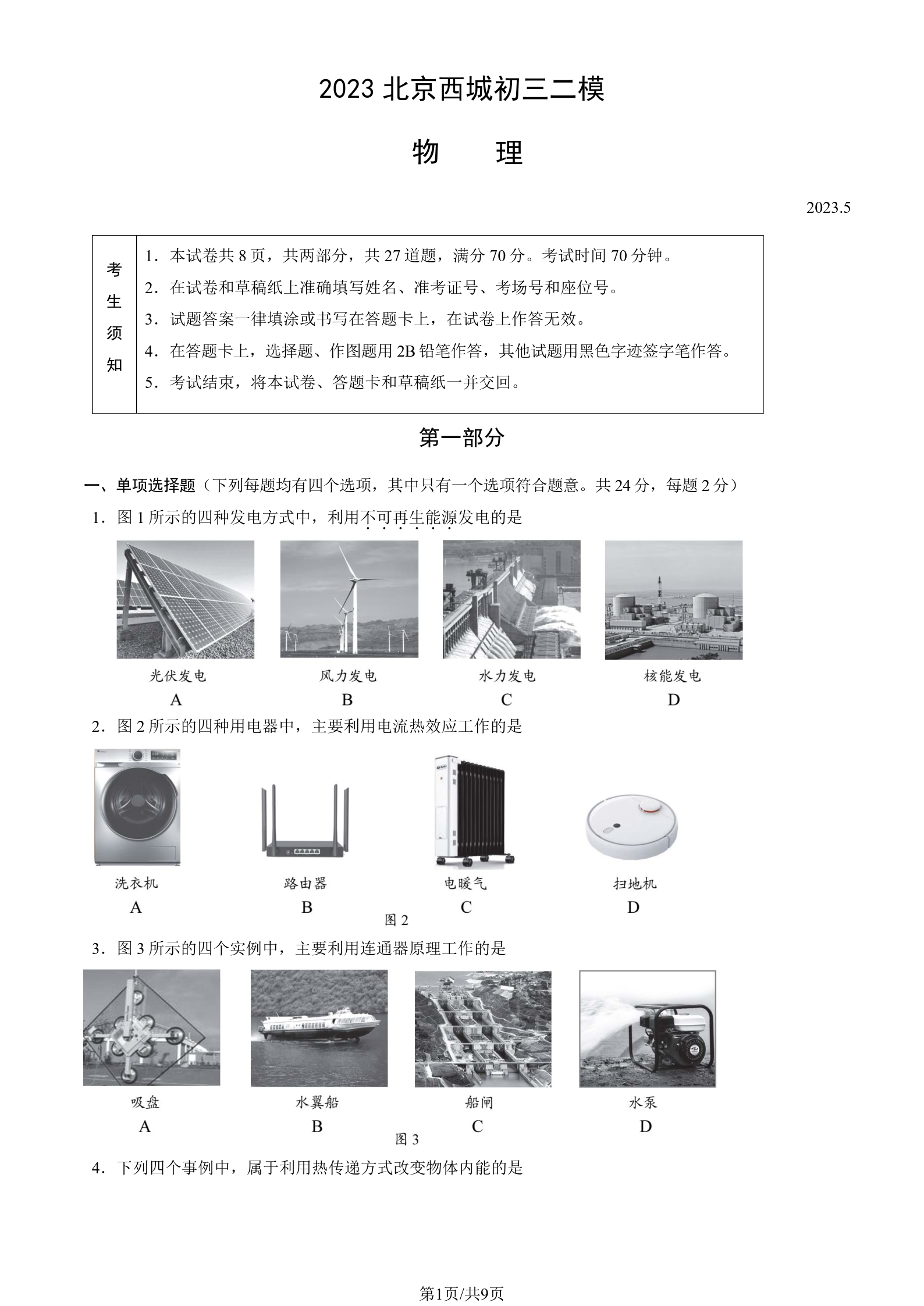 2023北京西城区初三二模正在进行,admw360中考网为大家整理了物理试题及答案,分享给大家。