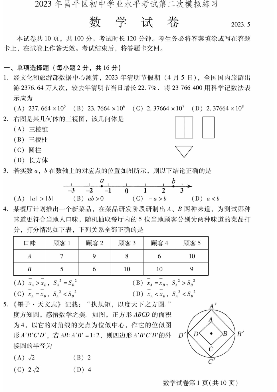 2023北京昌平区初三二模正在进行,admw360中考网为大家整理了数学试题及答案,分享给大家。