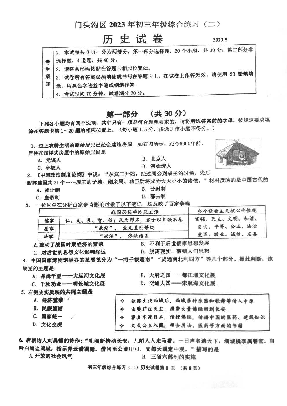 2023北京门头沟区初三二模正在进行,admw360中考网为大家整理了历史试题及答案,分享给大家。