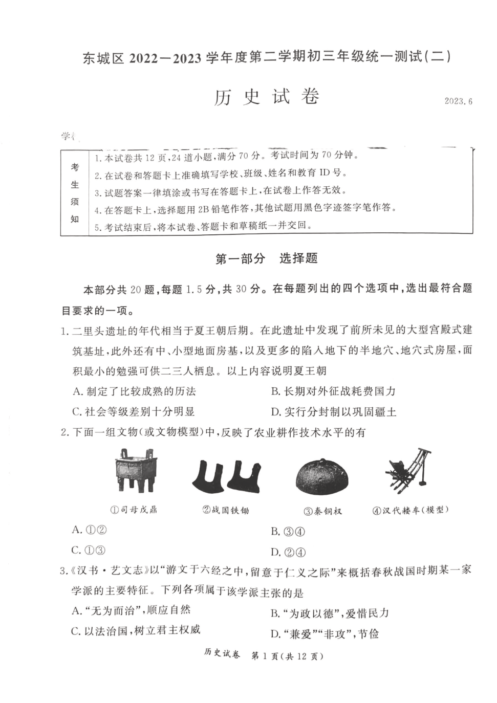 2023北京东城区初三二模正在进行,admw360中考网为大家整理了历史试题及答案,分享给大家。