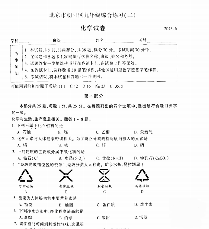 2023北京朝阳区初三二模正在进行,admw360中考网为大家整理了化学试题及答案,分享给大家。
